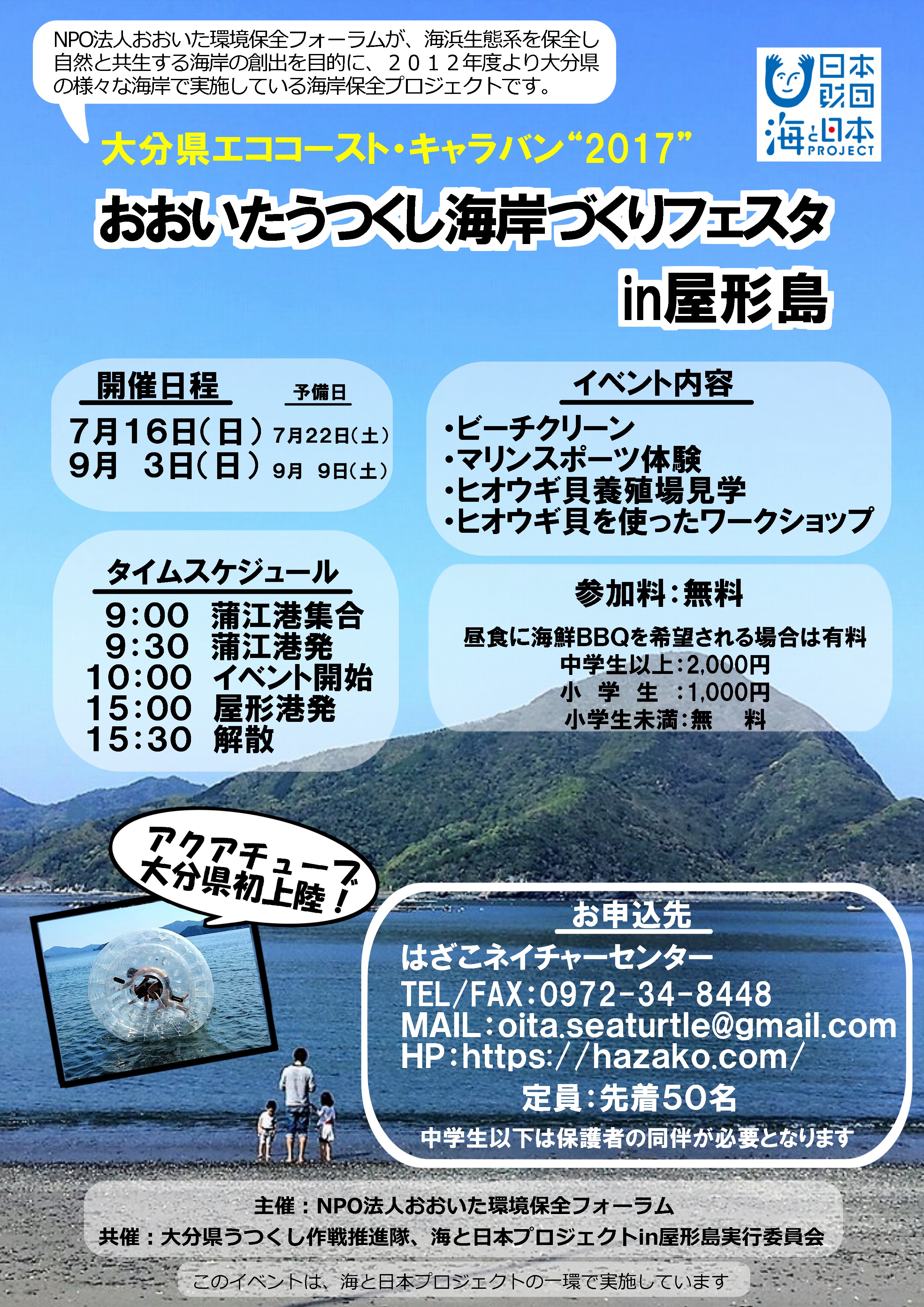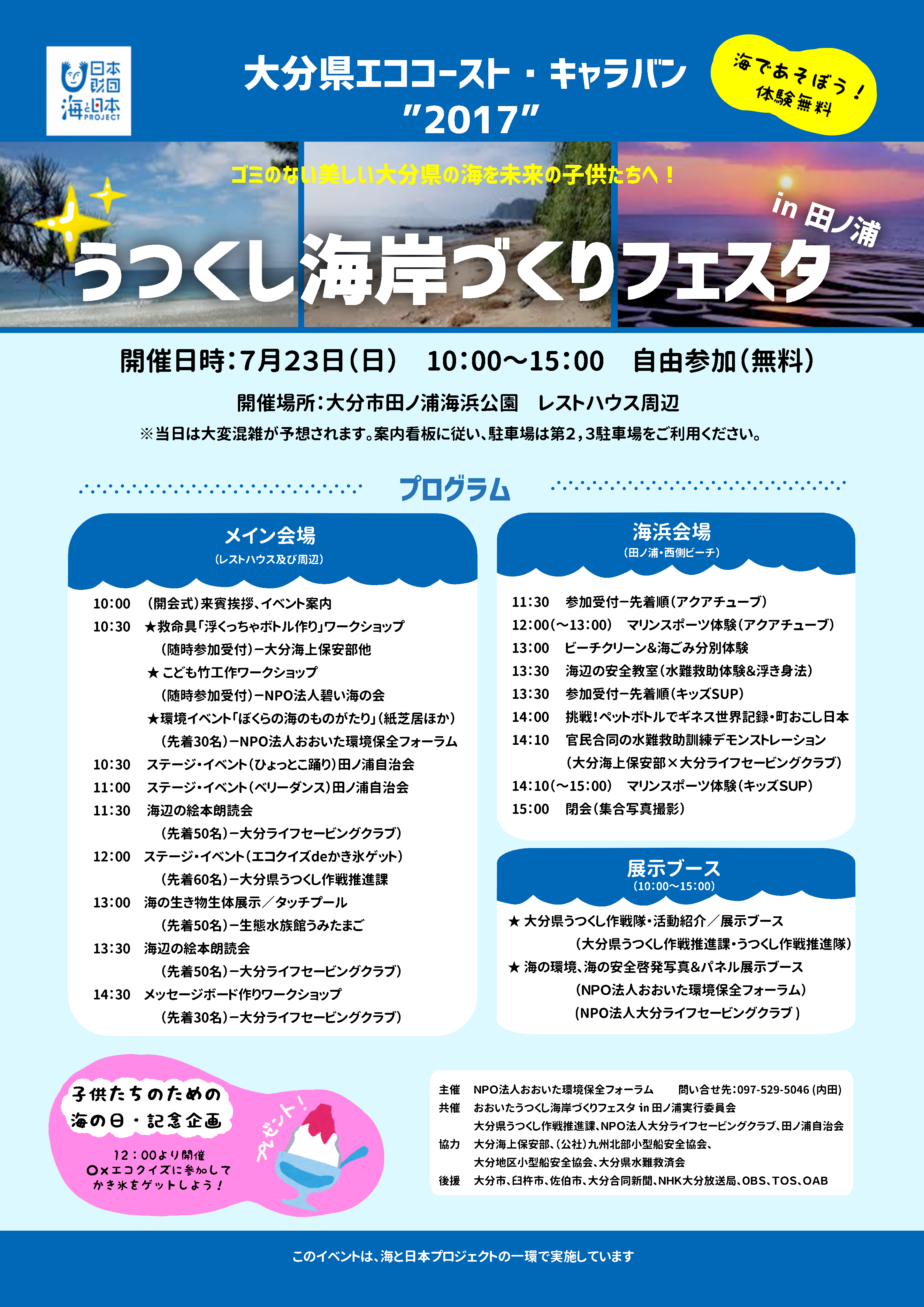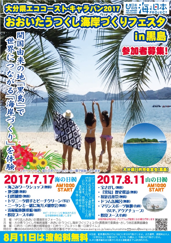 2017年度大分県と共同実施する体験型事業(海と日本2017)各開催イベントのチラシ。