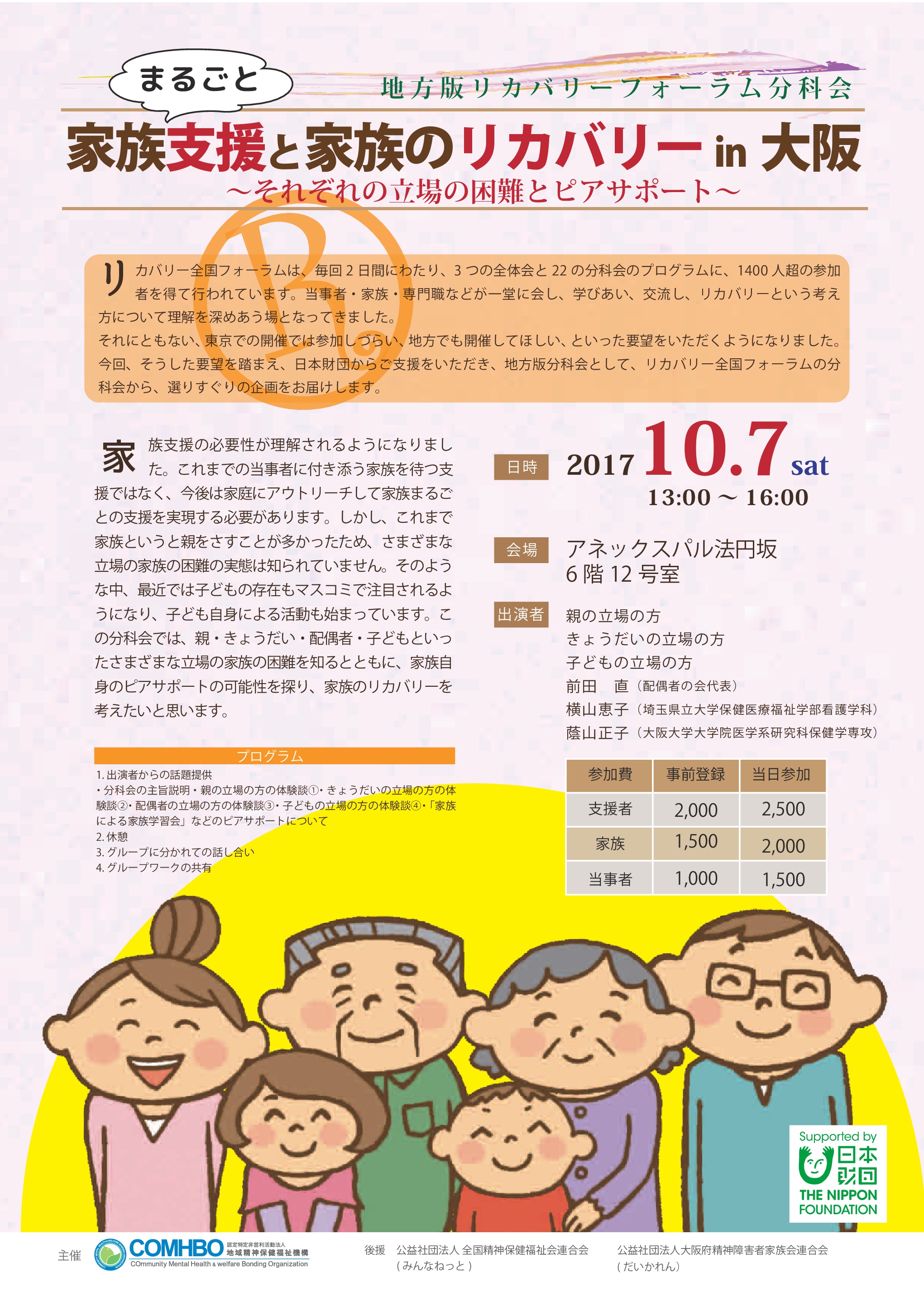 2017年度 リカバリーフォーラム発信~ウェブサイトへの展開とブロック別分科会の開催~事業チラシ