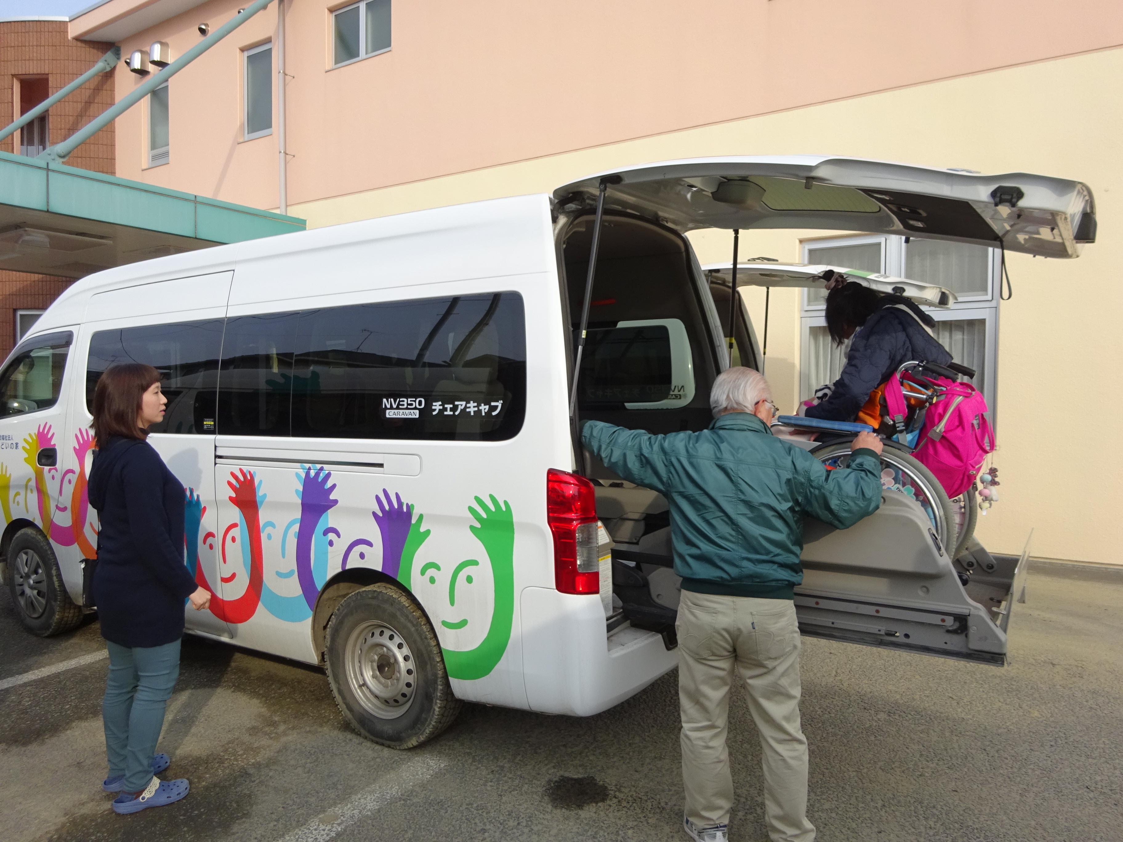 車 種 : 日産/キャラバン 普通車 2WD/AT ガソリン 車いす2+8名 事業費総額 : 2,627,000円 助成額 : 2,100,000円 成果物概要 つどいの家・コペル(生活介護)では、登録利用者53名おりその中でも送迎を利用を利用されている方が半数以上いらっしゃいます。助成をいただき車輌配備の充実をはかることができました。それにより、送迎範囲の拡大だけでなく、個別外出や販売会などの外出活動においても幅を広げることができました。 |
