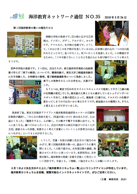 海洋教育の取り組みについて、三浦市内の全教職員に配布しているネットワーク通信です。