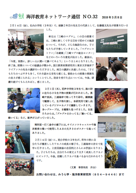 海洋教育の取り組みについて、三浦市内の全教職員に配布しているネットワーク通信です。