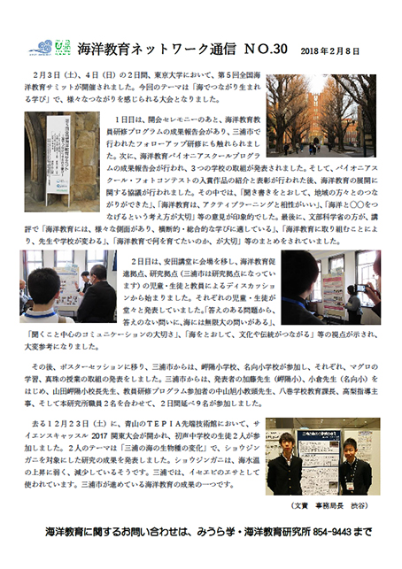 海洋教育の取り組みについて、三浦市内の全教職員に配布しているネットワーク通信です。