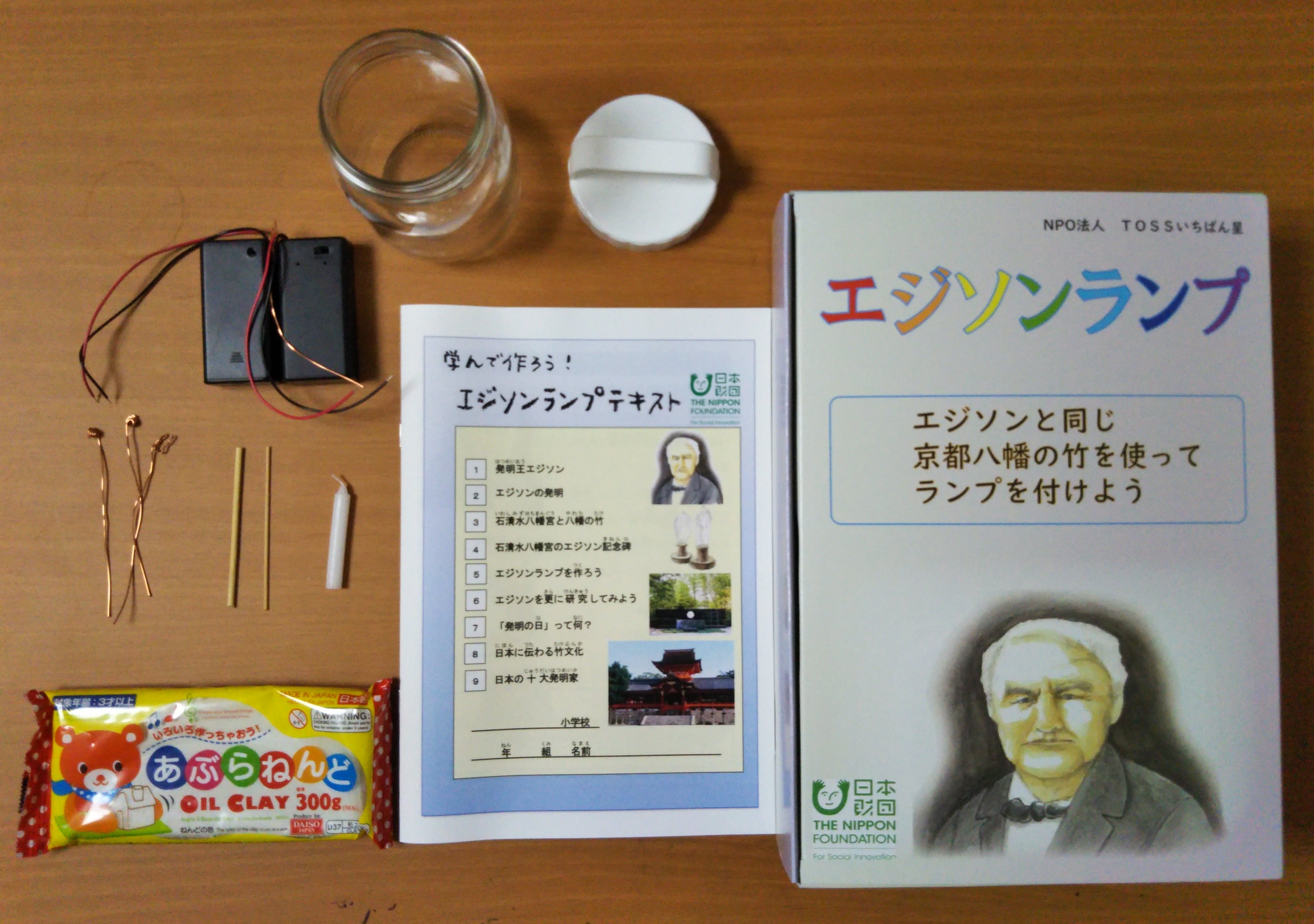 ○学んで作ろう!エジソンランプテキスト ・児童向けのテキスト ・考え方としては下記のように作成されている。 (1)エジソンという児童にとってよく知る人物から導入を行うことによって講座に入りやすくしている。 (2)日本、京都、八幡の竹が使われていたという事実を学ぶことで、日本の竹の素晴らしさを感じる (3)エジソンと日本のつながりについて石清水八幡宮というキーワードで学習する。 (4)実際にエジソンランプを作成する際のテキストとして活用できる。 (5)日本における「発明」について学習できる。 (6)日本に伝わる竹文化について学べる。 (7)アメリカ人のエジソンだけではなく、日本人の発明家について学習することにより日本の素晴らしさを感じる。 ・目次 1 発明王エジソン 2 エジソンの発明 3 石清水八幡宮と八幡の竹 4 石清水八幡宮のエジソン記念碑 5 エジソンランプを作ろう 6 エジソンを更に研究してみよう 7 「発明の日」って何? 8 日本に伝わる竹文化 9 日本の十大発明家 【textbook_teacher】 ○学んで作ろう!エジソンランプテキスト(指導者用) ・指導者用テキスト ・考え方としては下記のように作成されている。 (1)指導者用テキストを学べば、全く知らない方でも講座を担当することができる。 (2)シナリオがあるので、話すことを迷わない。 (3)指導のポイントや話し方、褒め方、児童への対応などについても記載している。 (4)エピソードも多彩に記載しているので、テキストをより楽しく学ばせることができる。 (5)国語や社会についての学習も派生的に行うことが可能となっている。 (6)石清水八幡宮の宝物についても記載しているので、伝統文化についての学習もできる。 (7)児童用テキストに書いていない内容で児童の興味を強く引かせることができる。 (8)古典教材「竹取物語」やことわざ・慣用句についても記載。 【flyer】 ○2018年2月10日実施の「作ってみようエジソンランプ教室」のチラシ 【newsletter】 ○2018年2月10日実施の「作ってみようエジソンランプ教室」の概要説明資料 【kit】 ○学んで作ろう!エジソンランプキット 左上から、 ・電池ボックス ・ビン ・銅線 ・竹ひご3mm,2mm ・ロウソク ・油粘土 ・テキスト ・ボックス |
