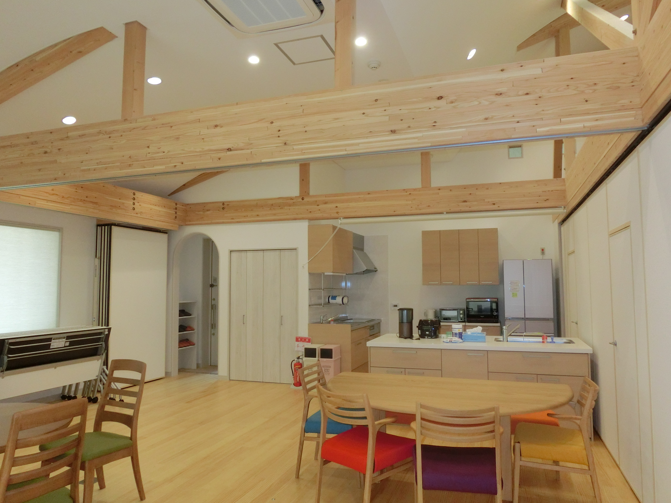 整備場所 福島県福島市蓬莱町8-15-1 面 積 敷地面積 357.5メートルm2、延べ床面積 201.52.m2 構 造 木造2階建 施設概要 相談室、キッチン、多目的ホール、トイレバスユニット付居室4室、 〇相談室・多目的ホール・トイレバスユニット付居室・キッチン・障がい者用トイレ(車椅子・オストメイト対応)を備えたファミリーハウスが完成した。 〇多目的ホールには30脚の椅子と長机を用意し、その他にも各場所に日常的に使えるようなソファや椅子を多く配置した。居室の利用も合わせると最大で70名程度の利用が可能になる。 |