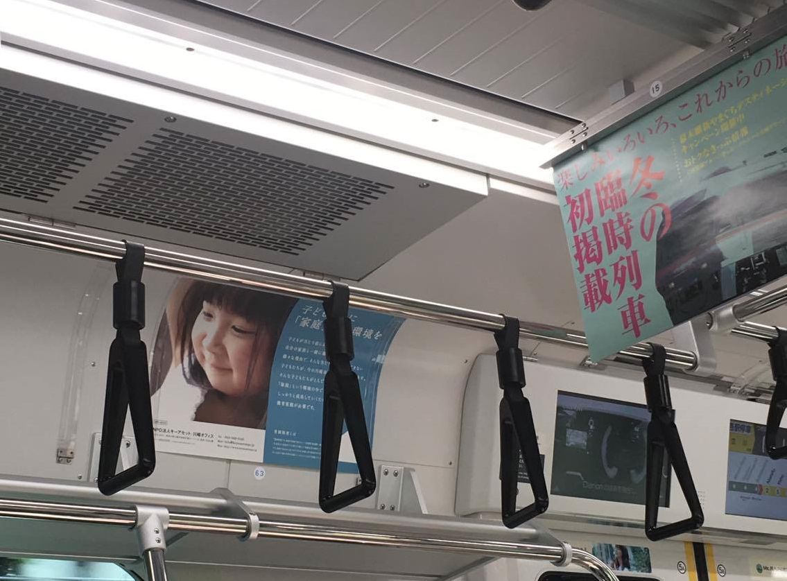 (1)JR南武線・鶴見線の車両内窓上にポスターを掲示して、里親制度及びキーアセットの周知を行った。
