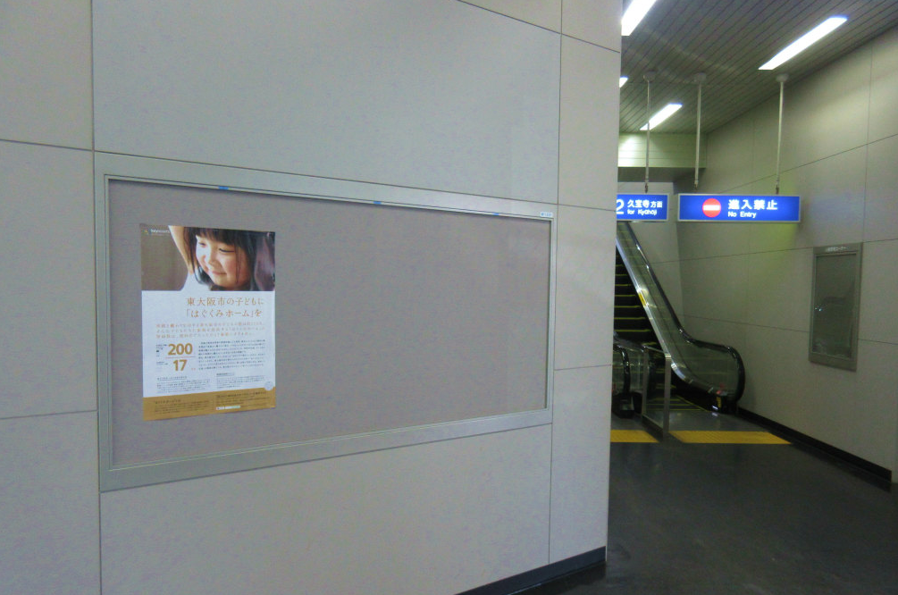 はぐくみホームによる養育促進を図るため、JR河内永和、JR高井田中央、JR鴻池新田、JR俊徳道、JR長瀬、JR徳庵、近鉄俊徳道、近鉄長瀬、近鉄八尾の各駅構内にポスターを設置した。