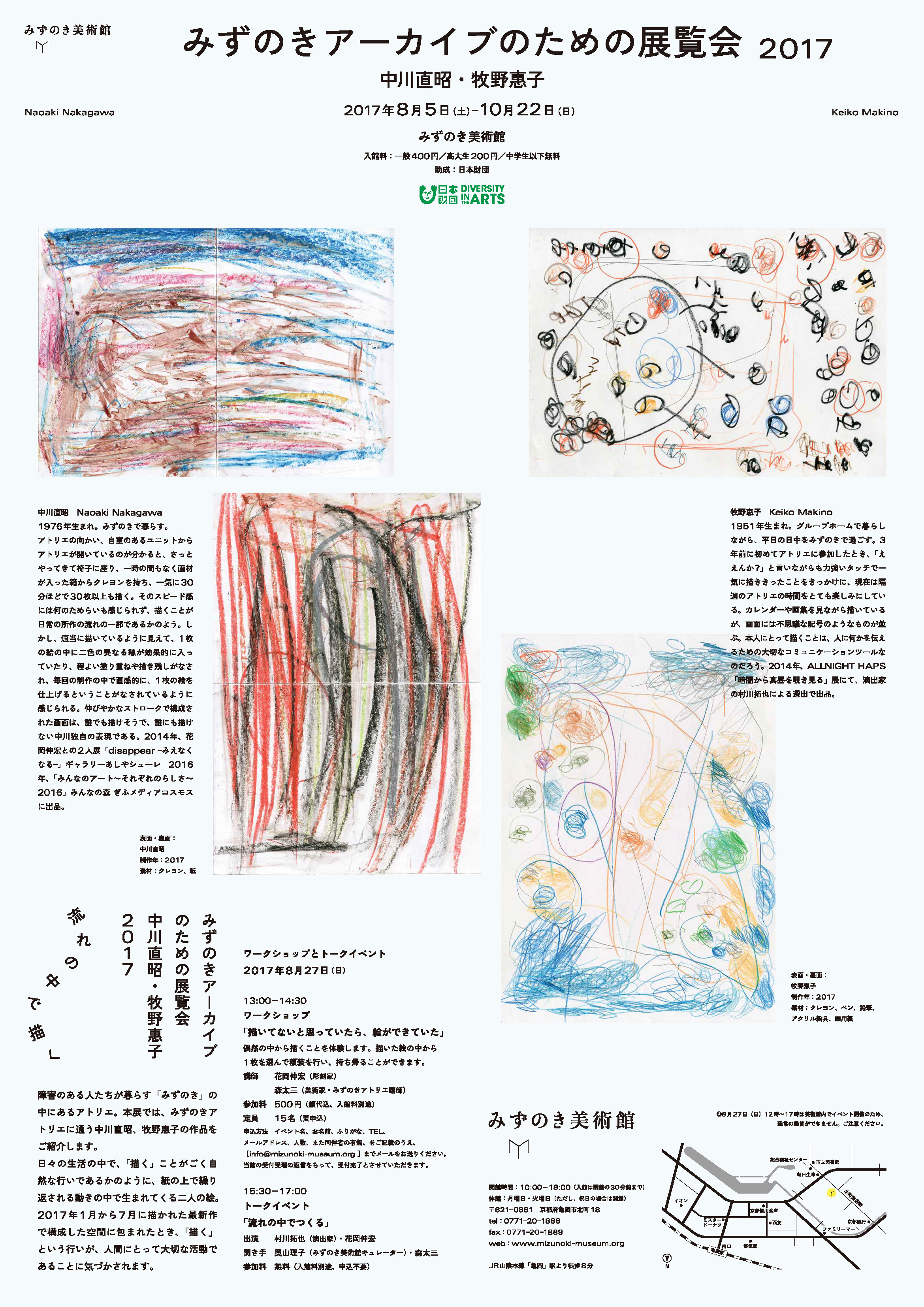 2017年度 みずのきアーカイブのための展覧会「中川直昭・牧野惠子 2017 流れのなかで描く」フライヤー