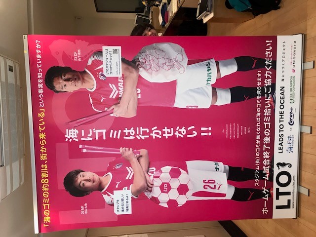 「セレッソ大阪」と、ホームゲーム終了後にスタジアム周辺のゴミ拾いを行い、海へ流れ着くゴミを減らします。 |