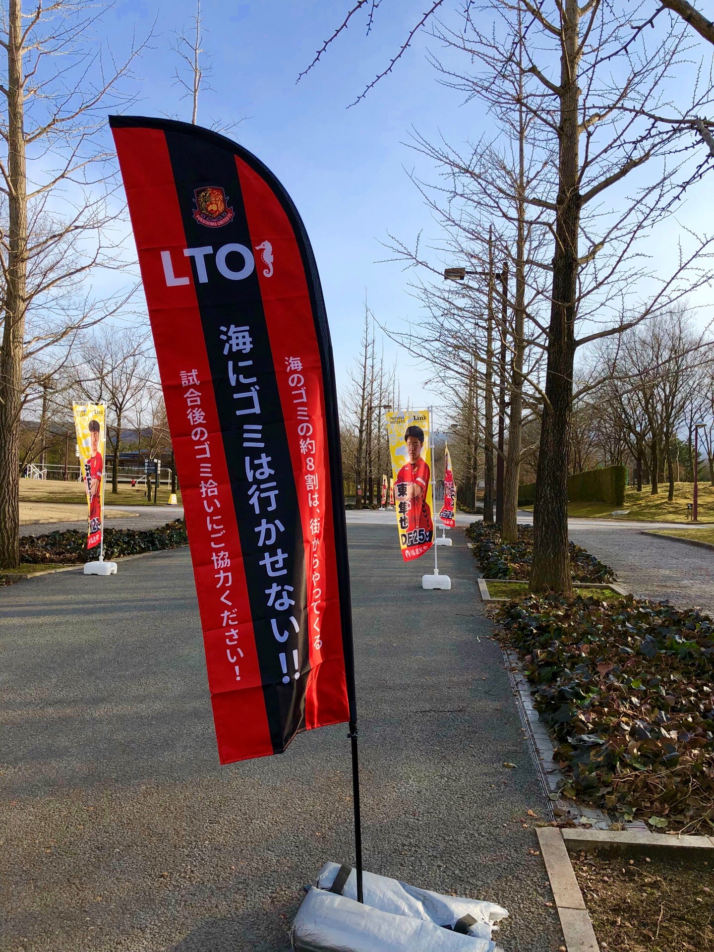 「福島ユナイテッドFC」と、ホームゲーム終了後にスタジアム周辺のゴミ拾いを行い、海へ流れ着くゴミを減らします。 |