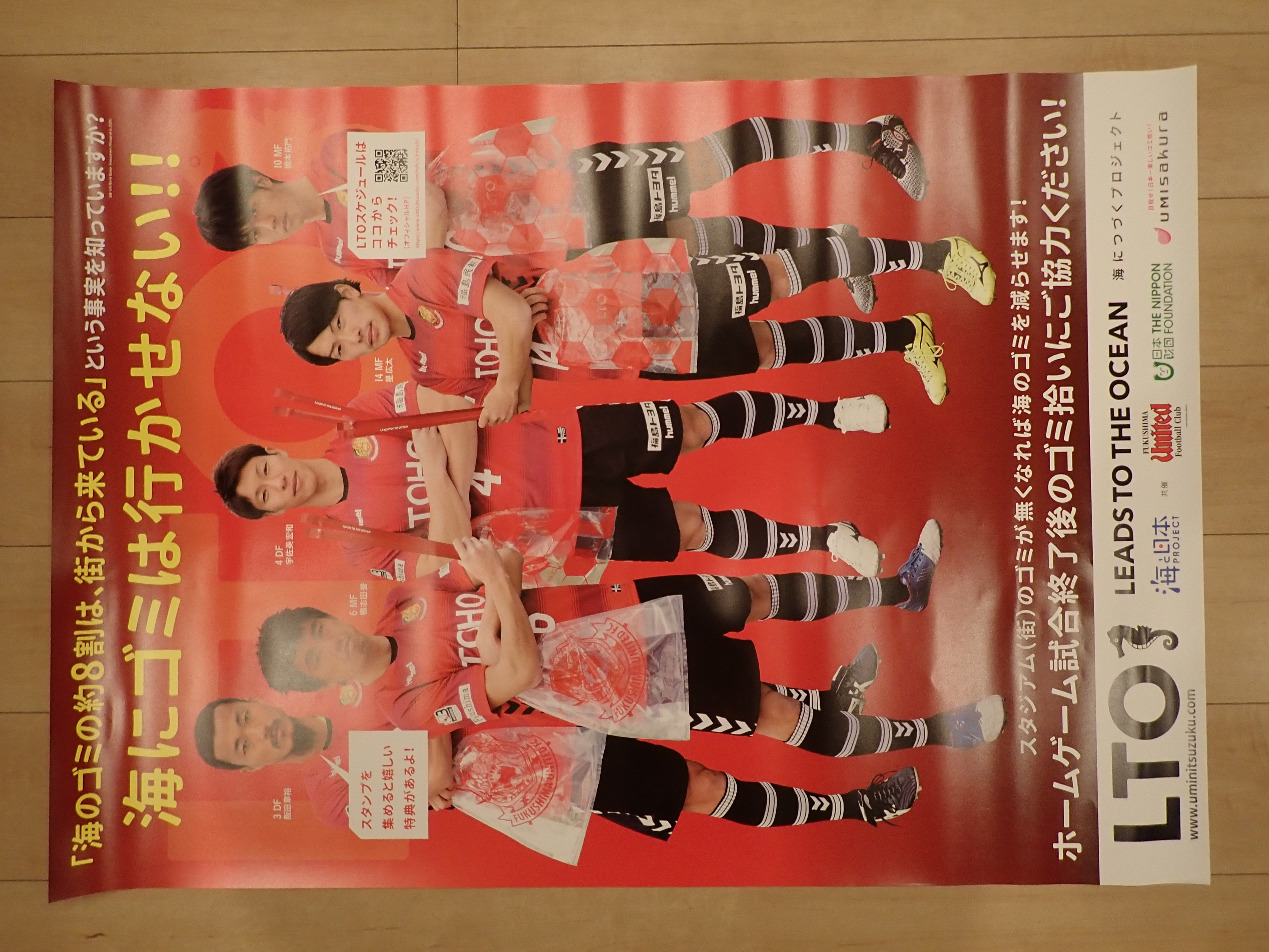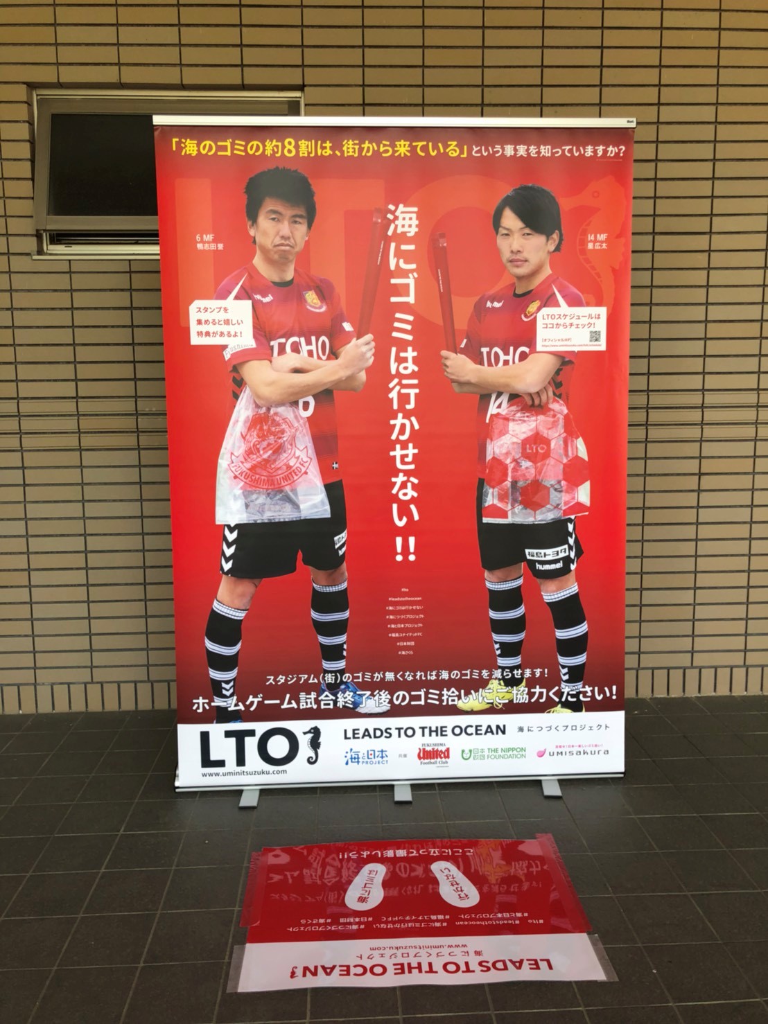 「福島ユナイテッドFC」と、ホームゲーム終了後にスタジアム周辺のゴミ拾いを行い、海へ流れ着くゴミを減らします。 |