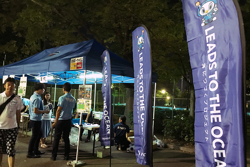 「横浜FC」と、ホームゲーム終了後にスタジアム周辺のゴミ拾いを行い、海へ流れ着くゴミを減らします。 |