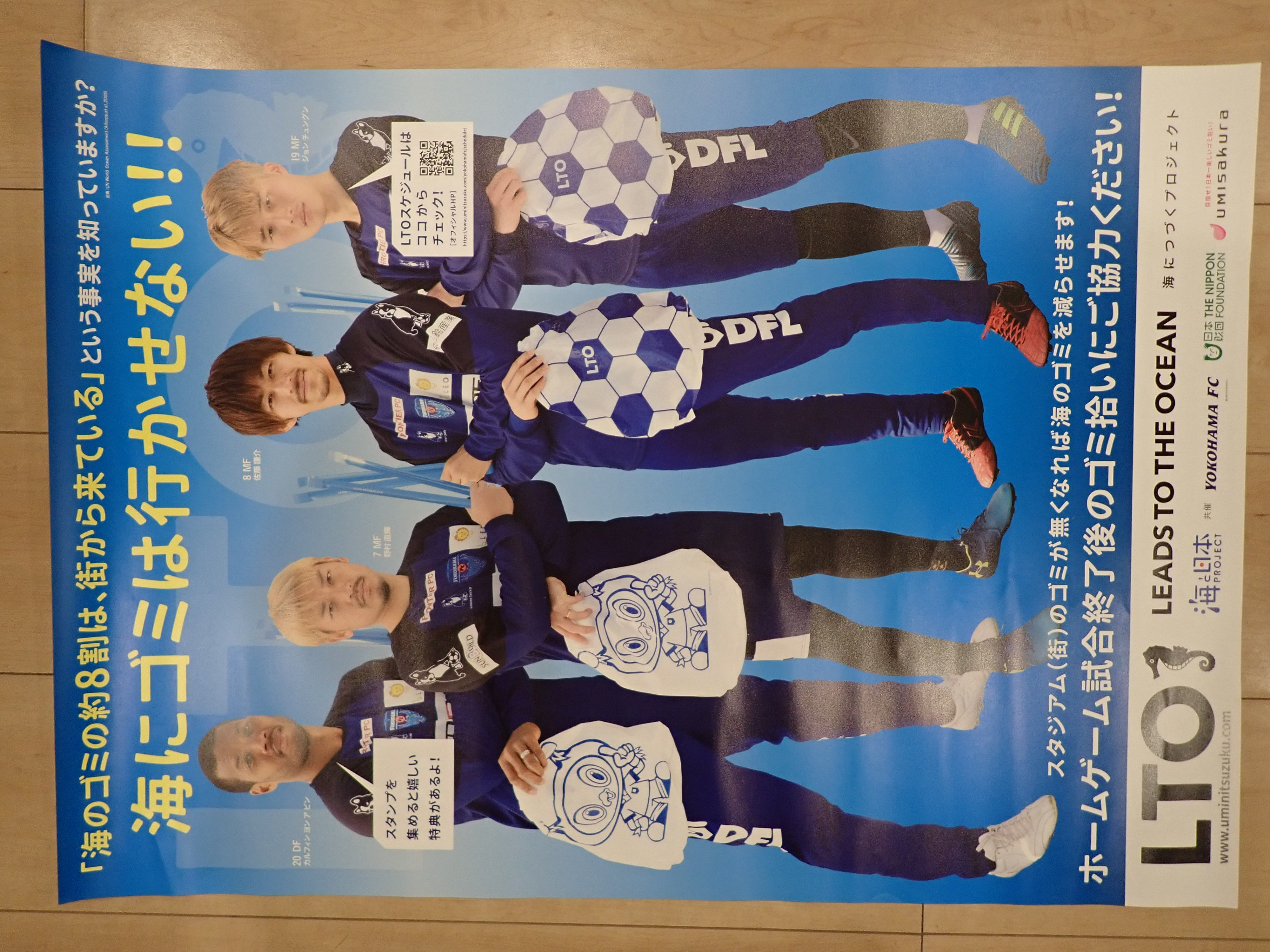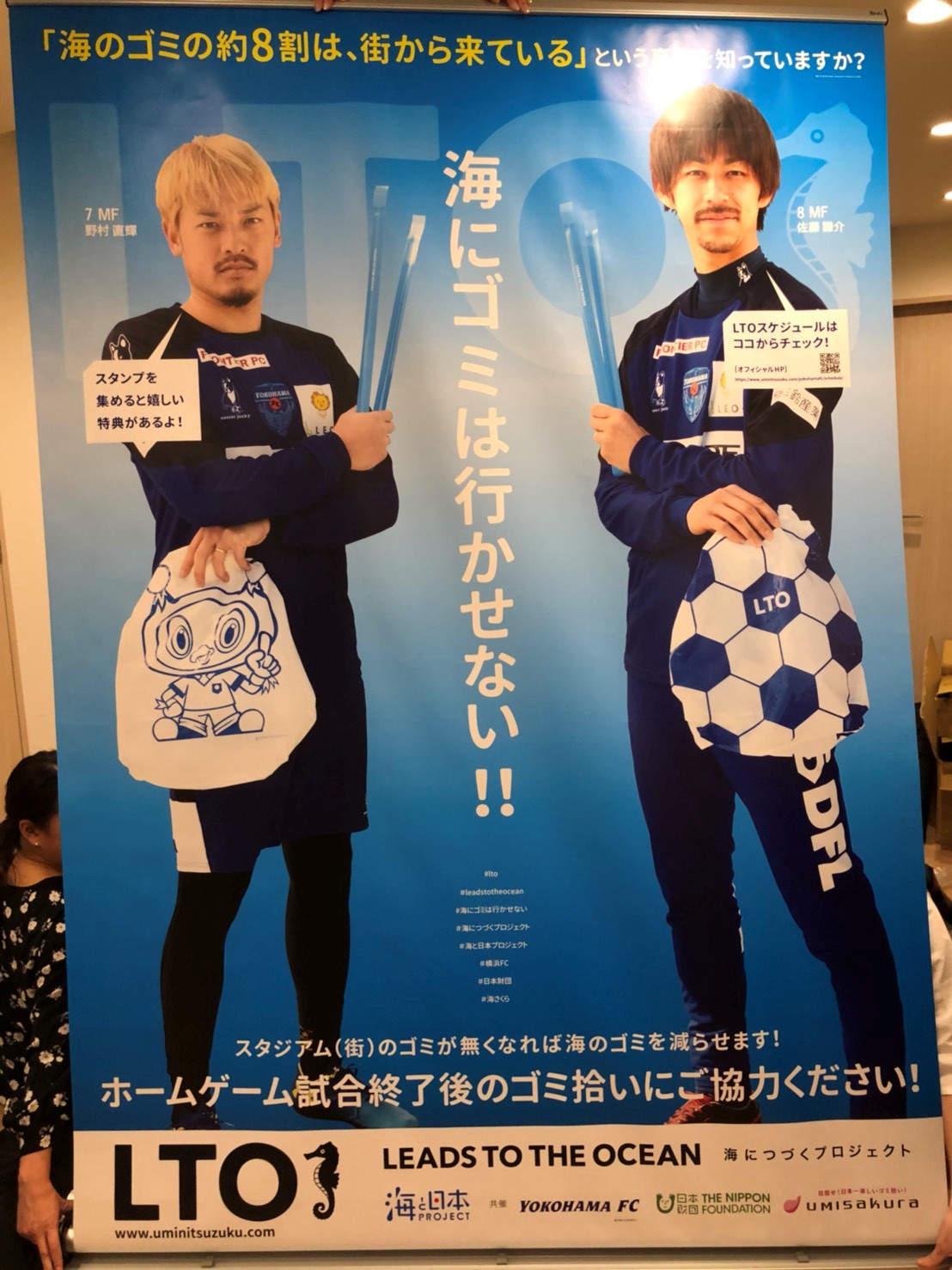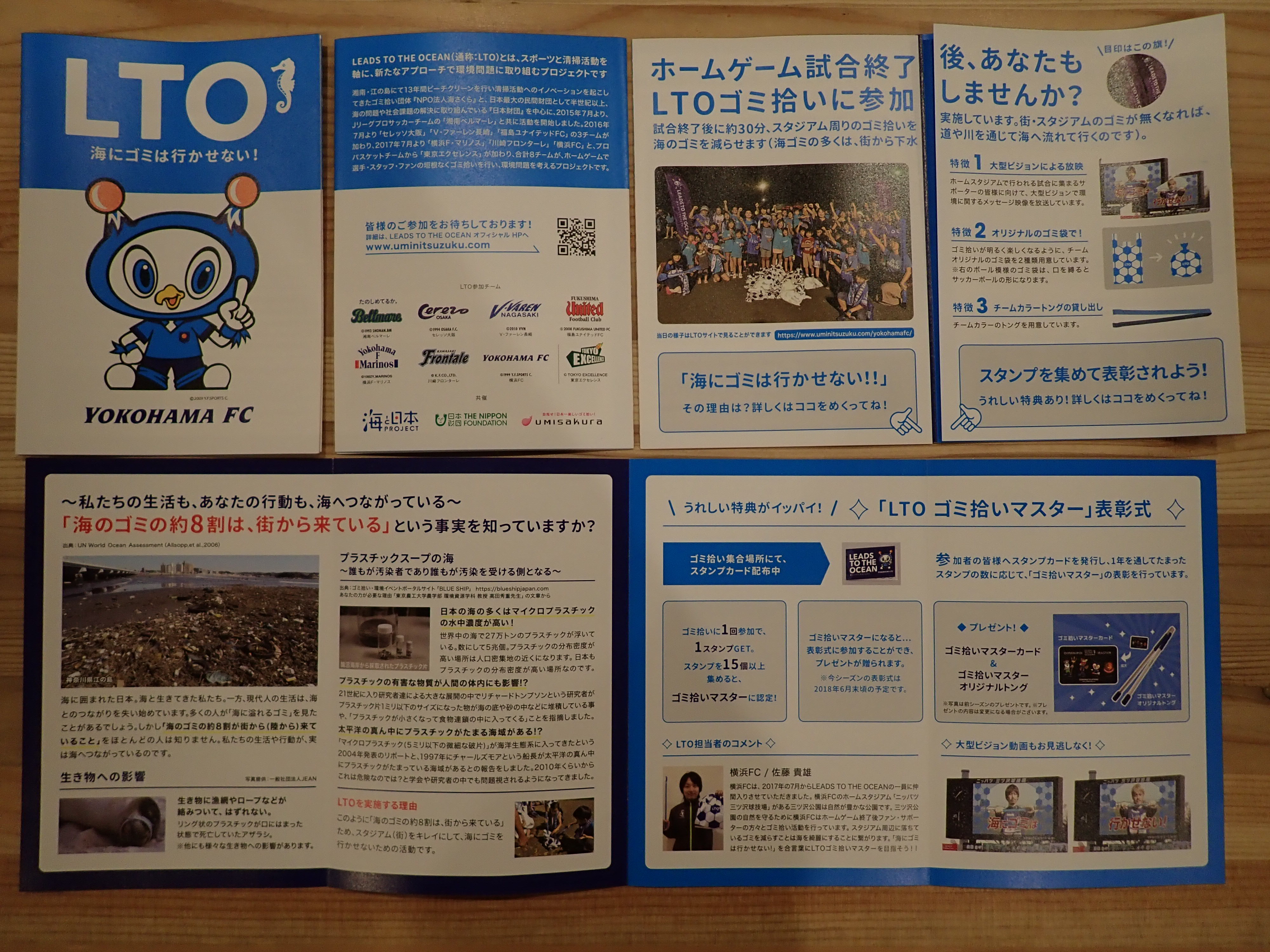 「横浜FC」と、ホームゲーム終了後にスタジアム周辺のゴミ拾いを行い、海へ流れ着くゴミを減らします。 |