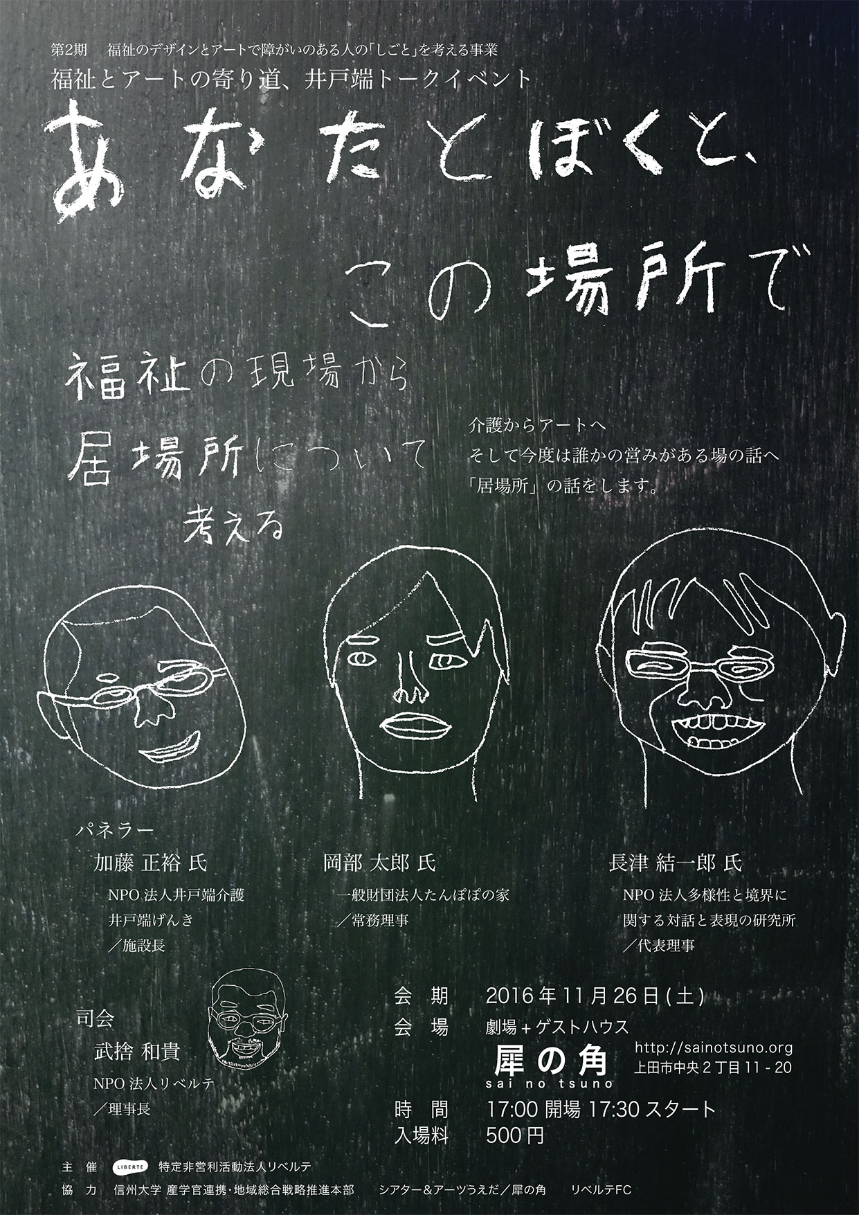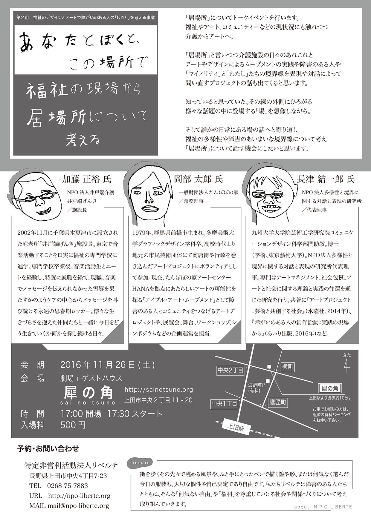 2016年度『あなたとぼくと、この場所で 福祉の現場から居場所について考える』チラシ