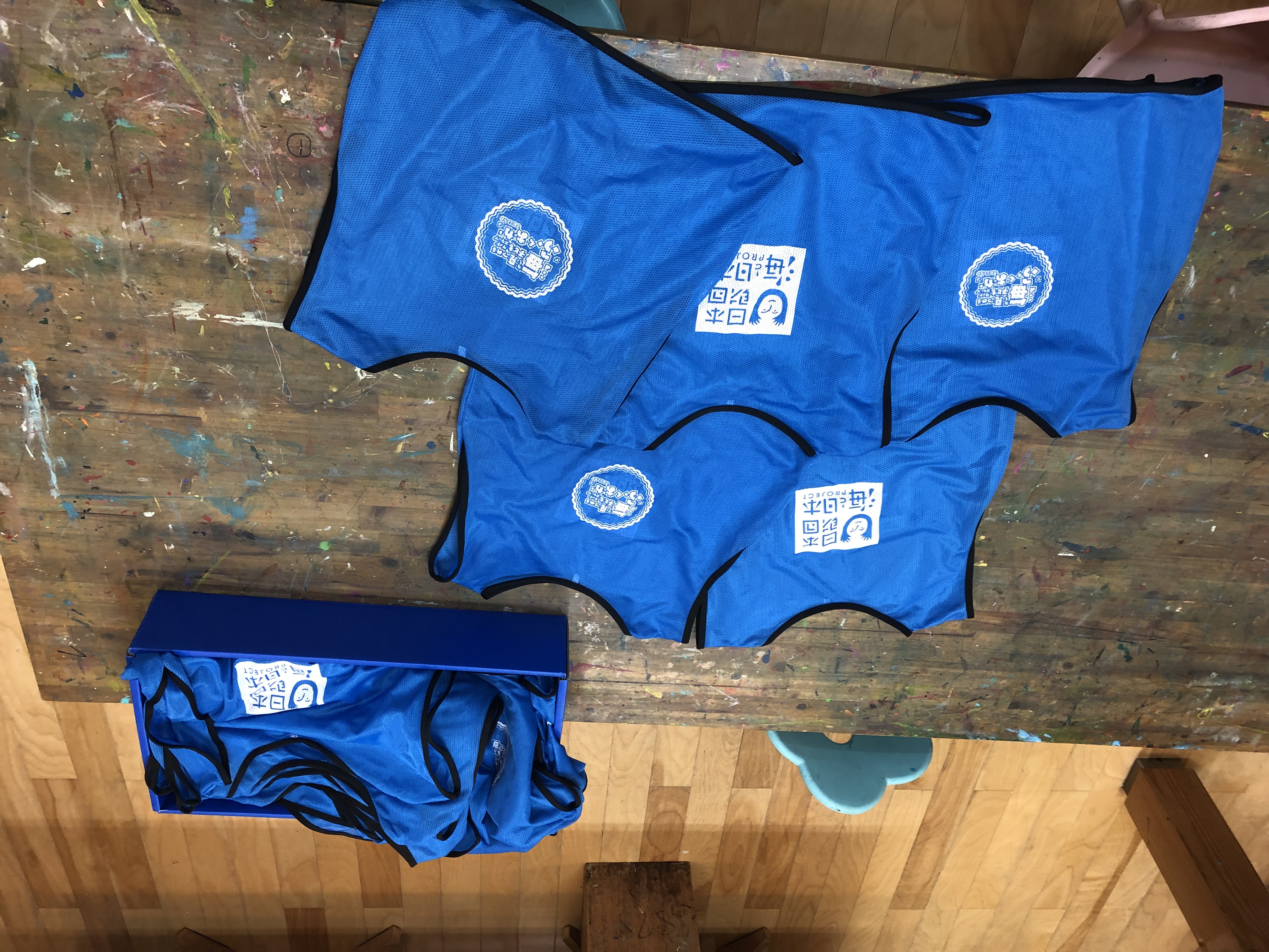 海から見つめる子どもランドスケープ「ふくおか」に参加した子どもたちが着用する日本財団ロゴマークが入ったビブス。