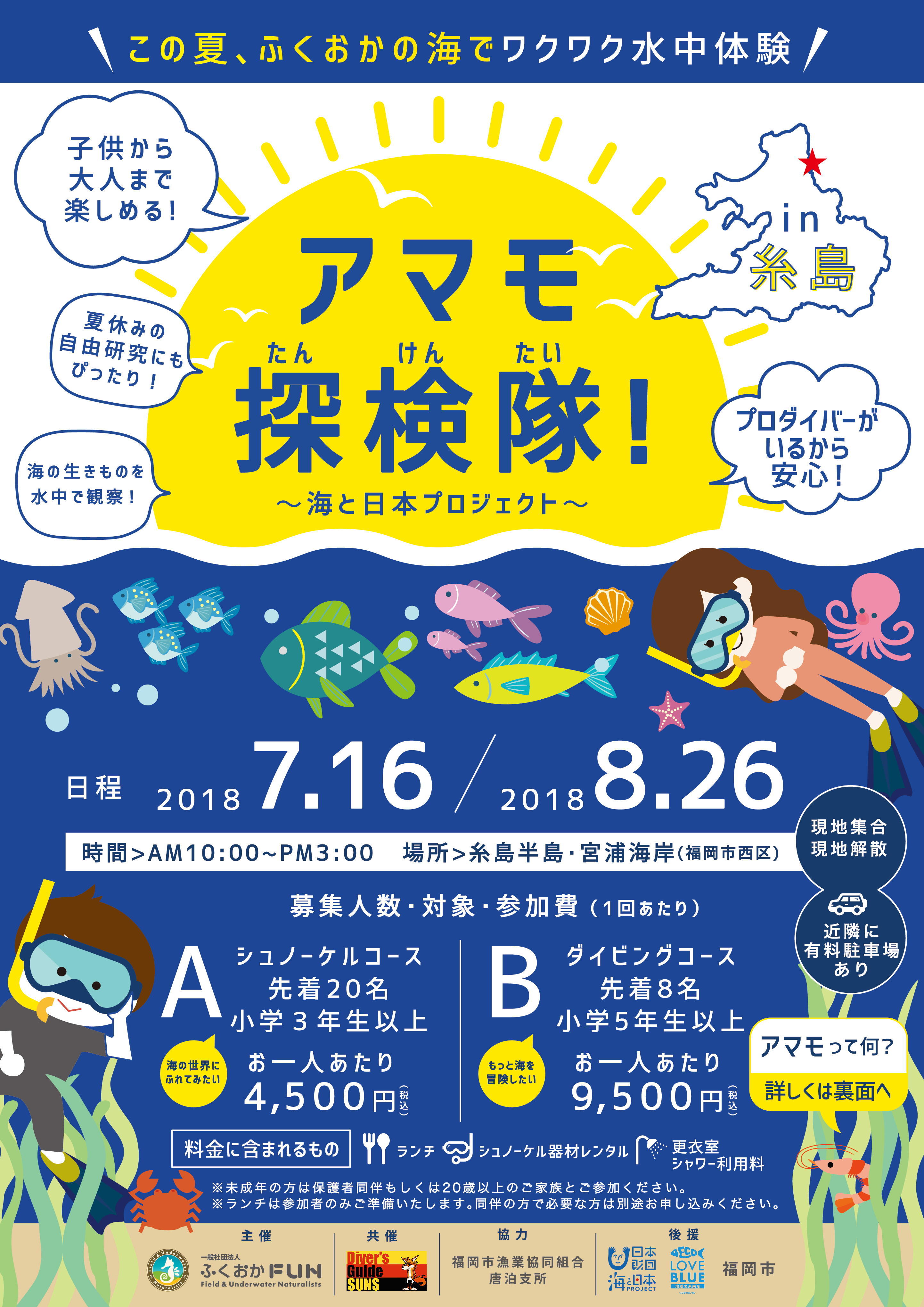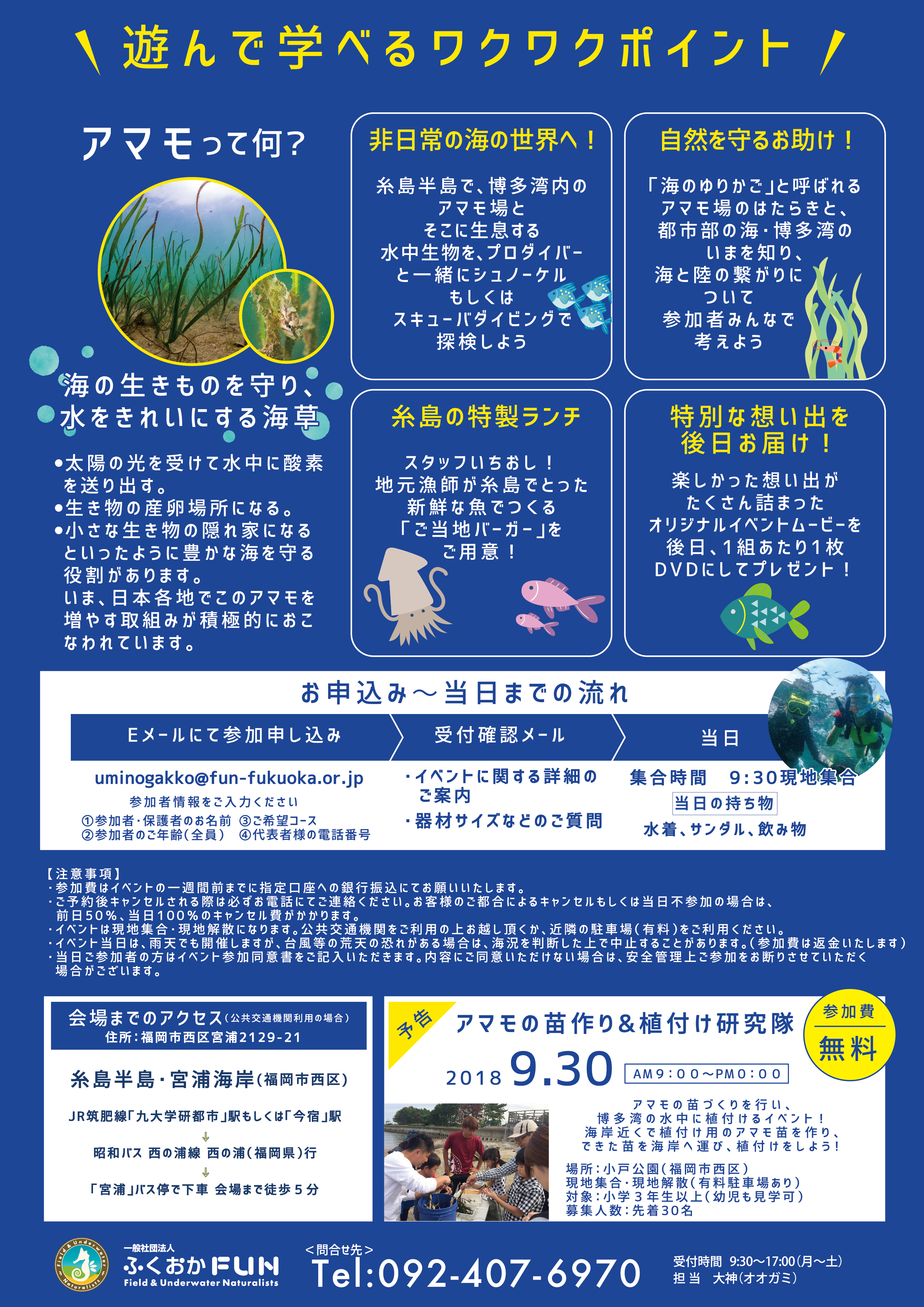 2018年度に実施した当団体主催のイベント「アマモ探検隊!」における参加者募集のためのチラシ。