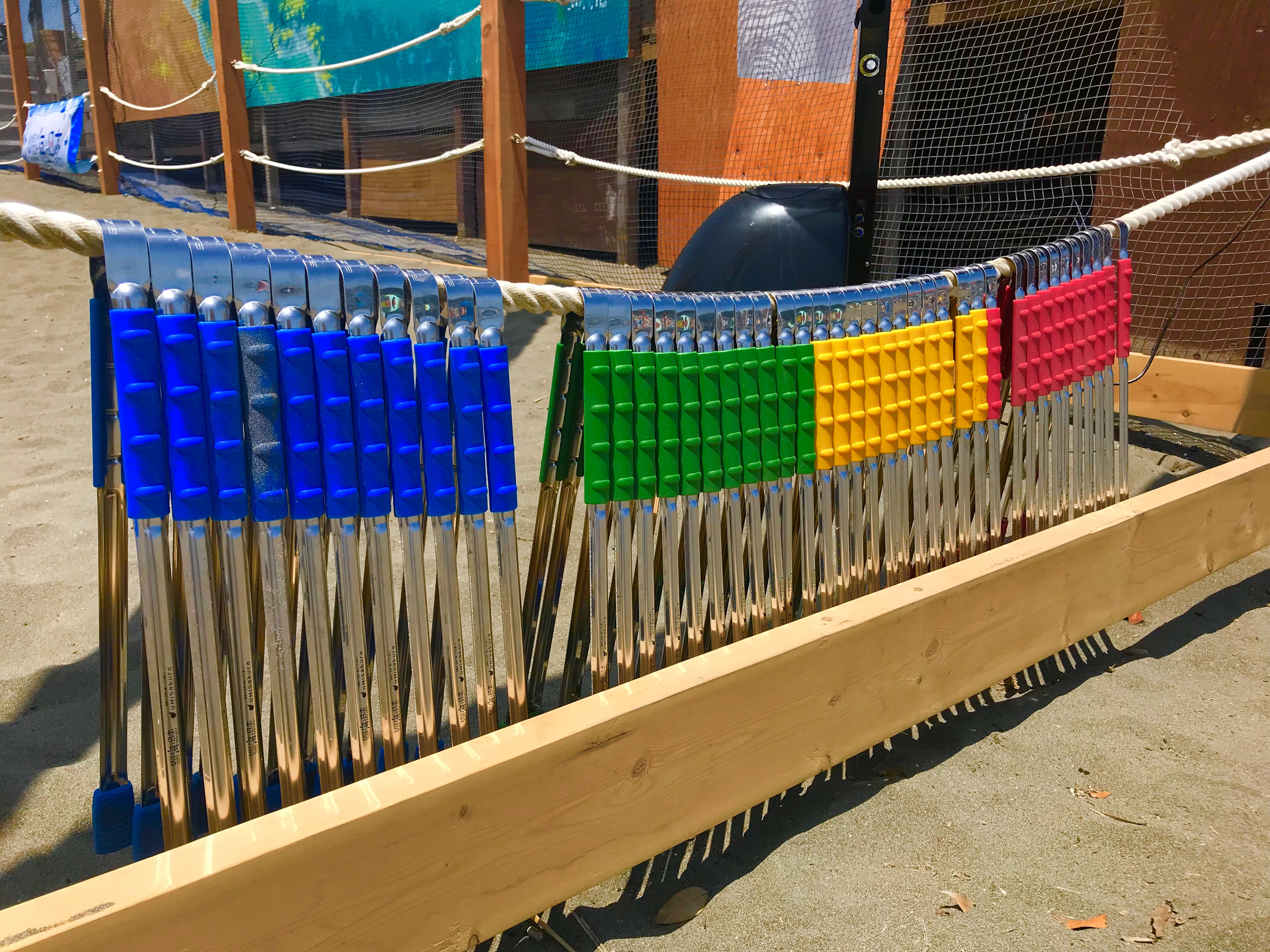 2018年の7月1日~8月末まで片瀬東浜にOPENした中学生以下を対象にした20種類の遊具が組み込まれているパーク。 このパークには、少しのビーチクリーンと、海の環境に関心をもってもらうための紙芝居をみたチビッ子のみが入園でき、 「BEACH SAVER」という称号リストバンドがもらえる仕組み。 次世代に「安心・安全な海・浜」をつくるうえで「海の楽しさ」と「海のお勉強」ができる場所となっています。 |