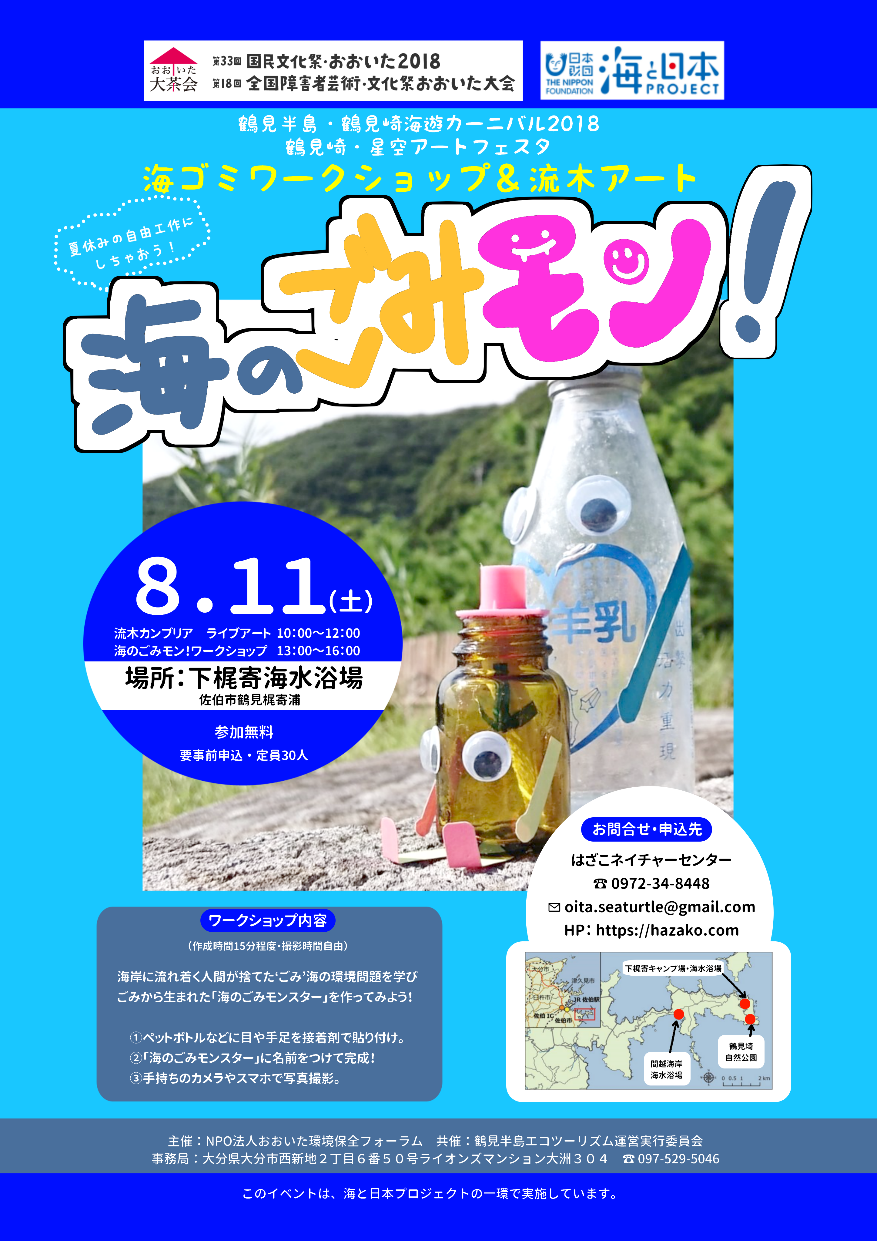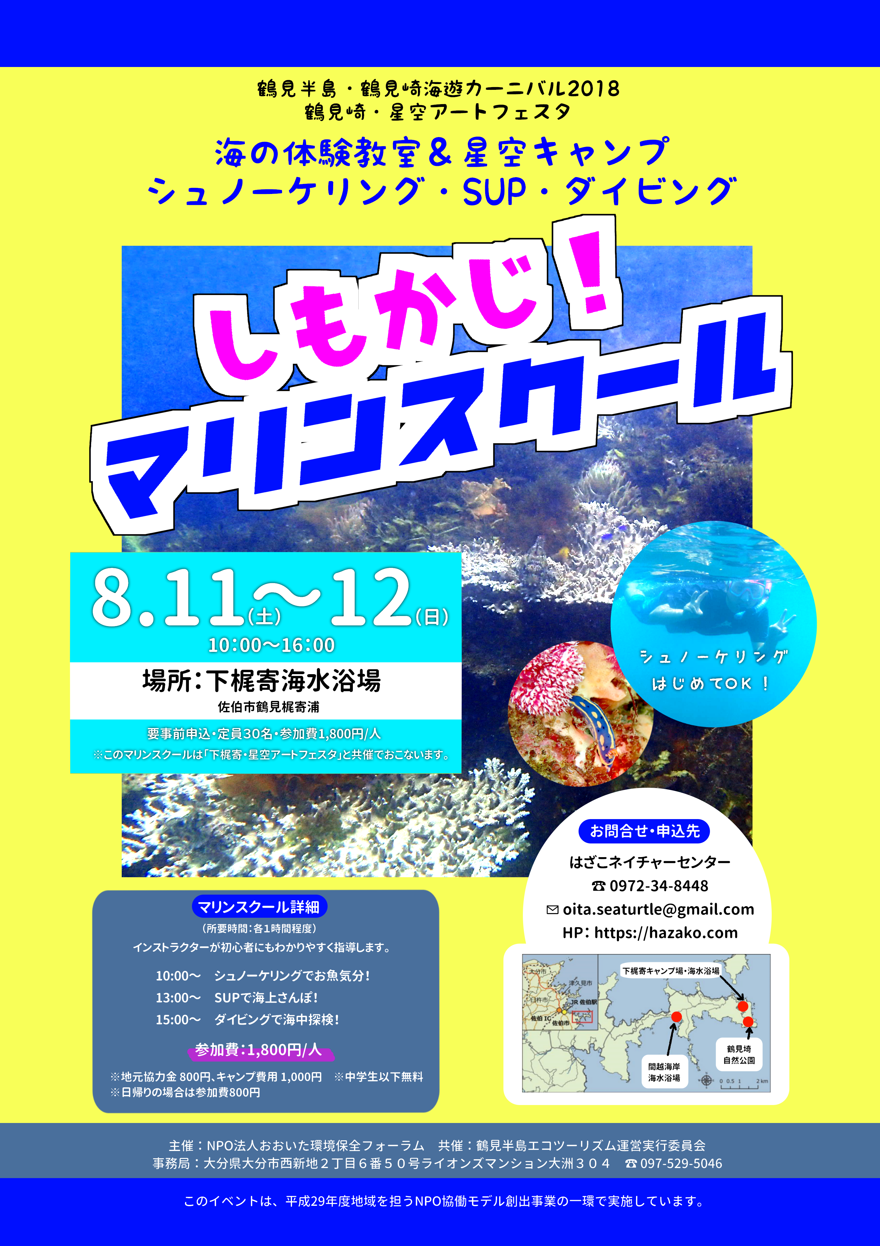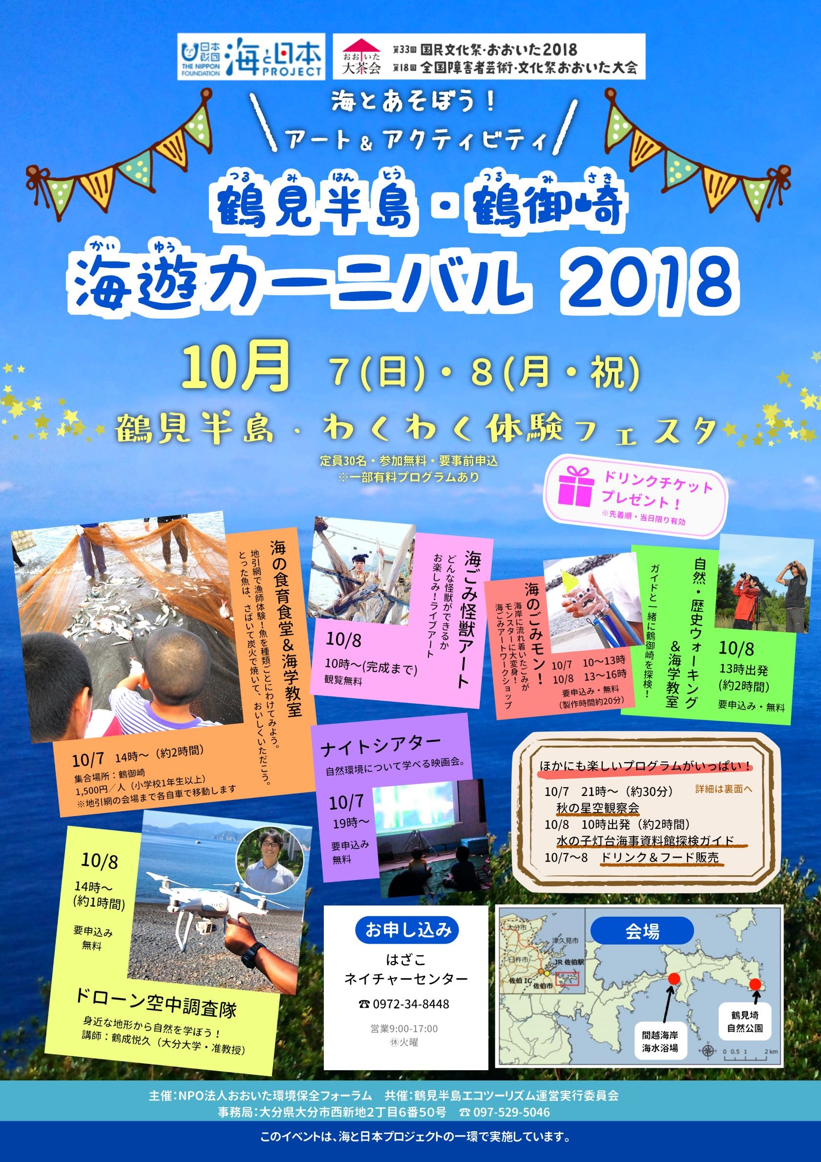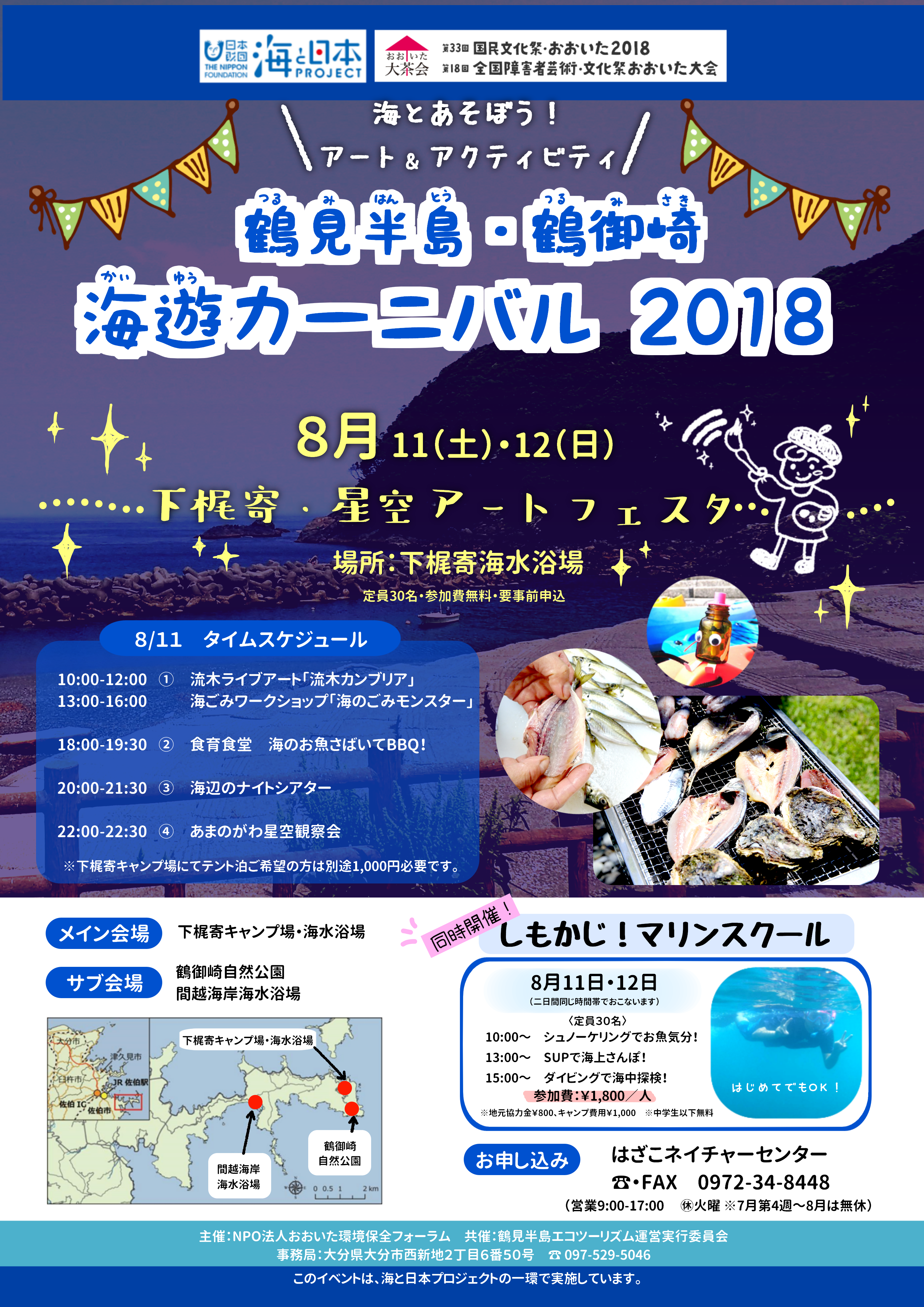 鶴見半島での宿泊型海洋体験プログラム(海と日本2018)各開催イベントのチラシ。