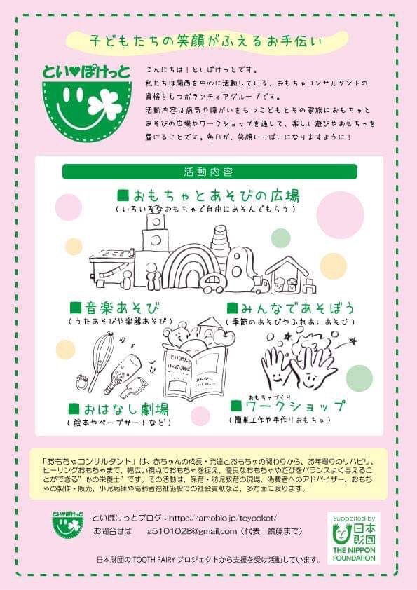 スペシャルキッズのためのおもちゃセットの整備と内容について 〇といぽけっとチラシ 助成金で作成したチラシデータ |