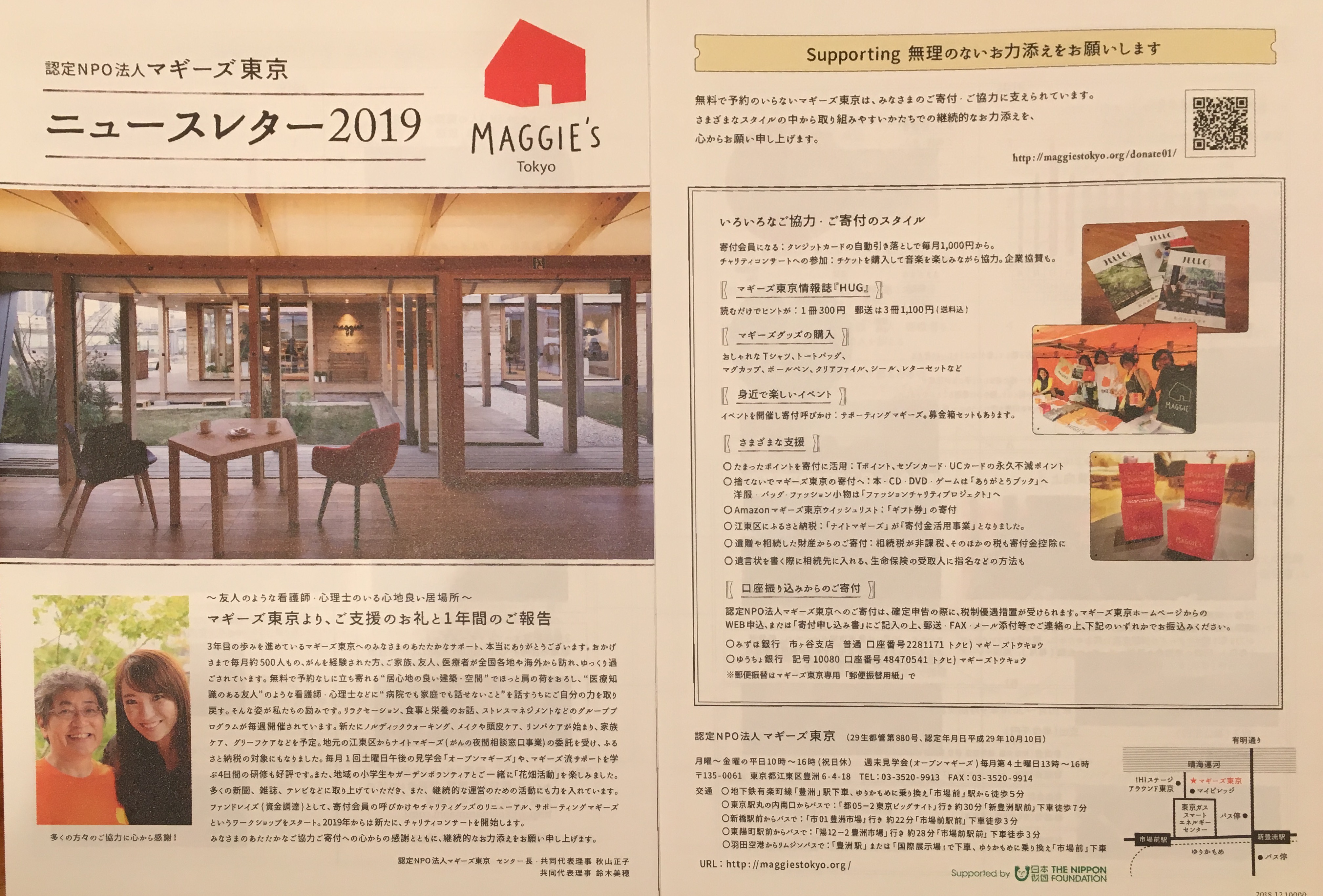 『マギーズ東京ニュースレター2019』の発行:マギーズ東京の1年間の活動の様子を掲載し、寄付者を中心に配布した。