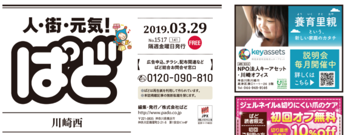 情報誌ぱど表紙面に広告を掲載し、川崎市内における養育里親への周知を行った。