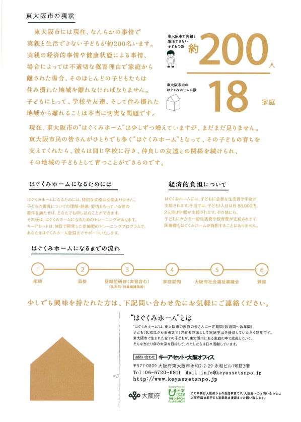 〇東大阪市内にてはぐくみホーム周知を図るためのチラシ広告。