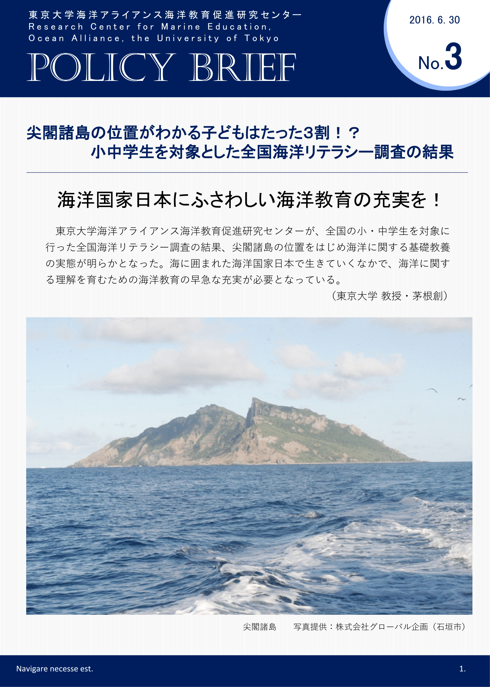2016年度 海洋教育ポリシー・ブリーフ・シリーズ