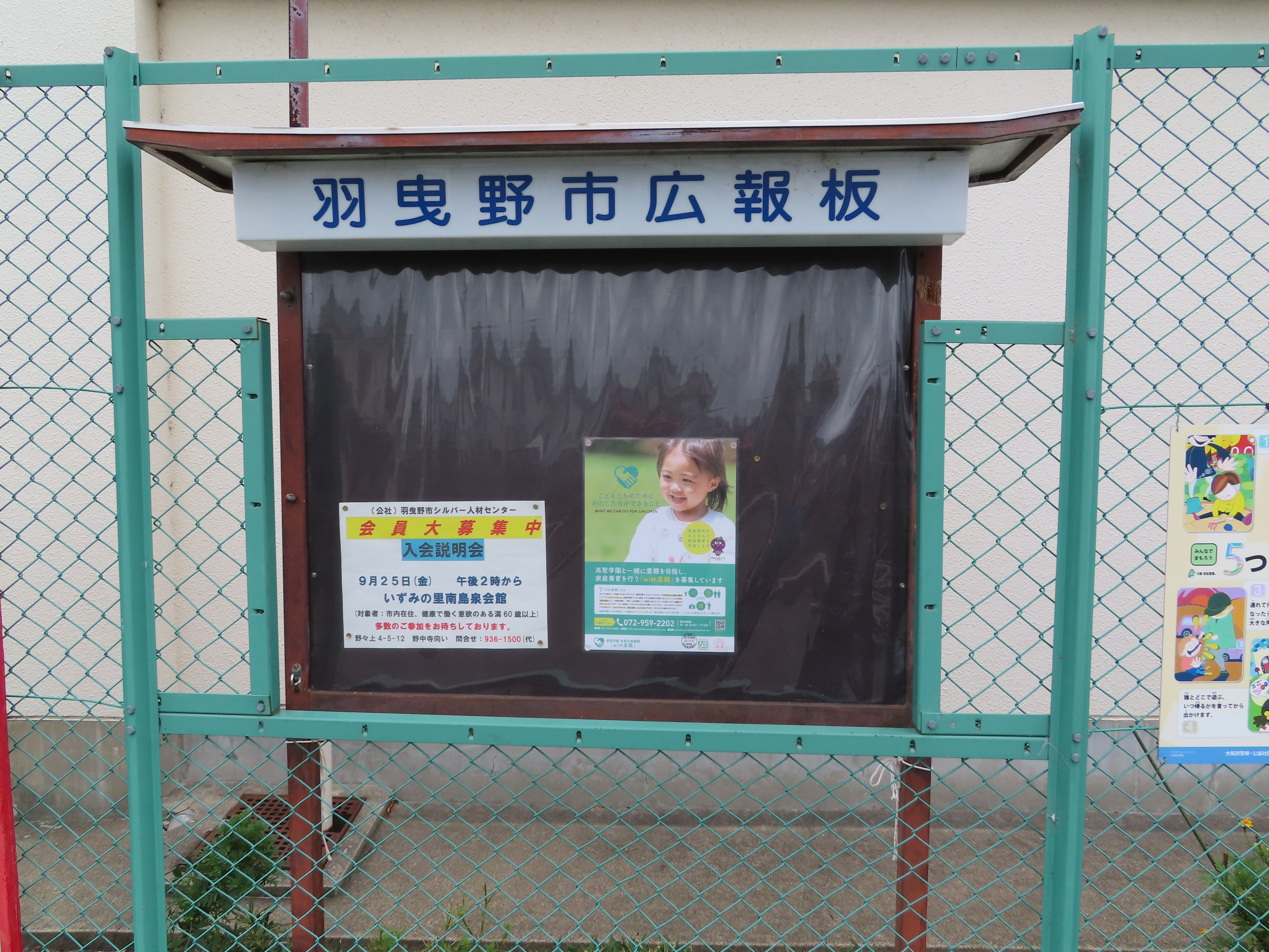 ・近鉄南大阪線古市駅での掲示 ・羽曳野市広報板への掲示 ・羽曳野市内公共施設での掲示 ・羽曳野市内商店等での掲示 |