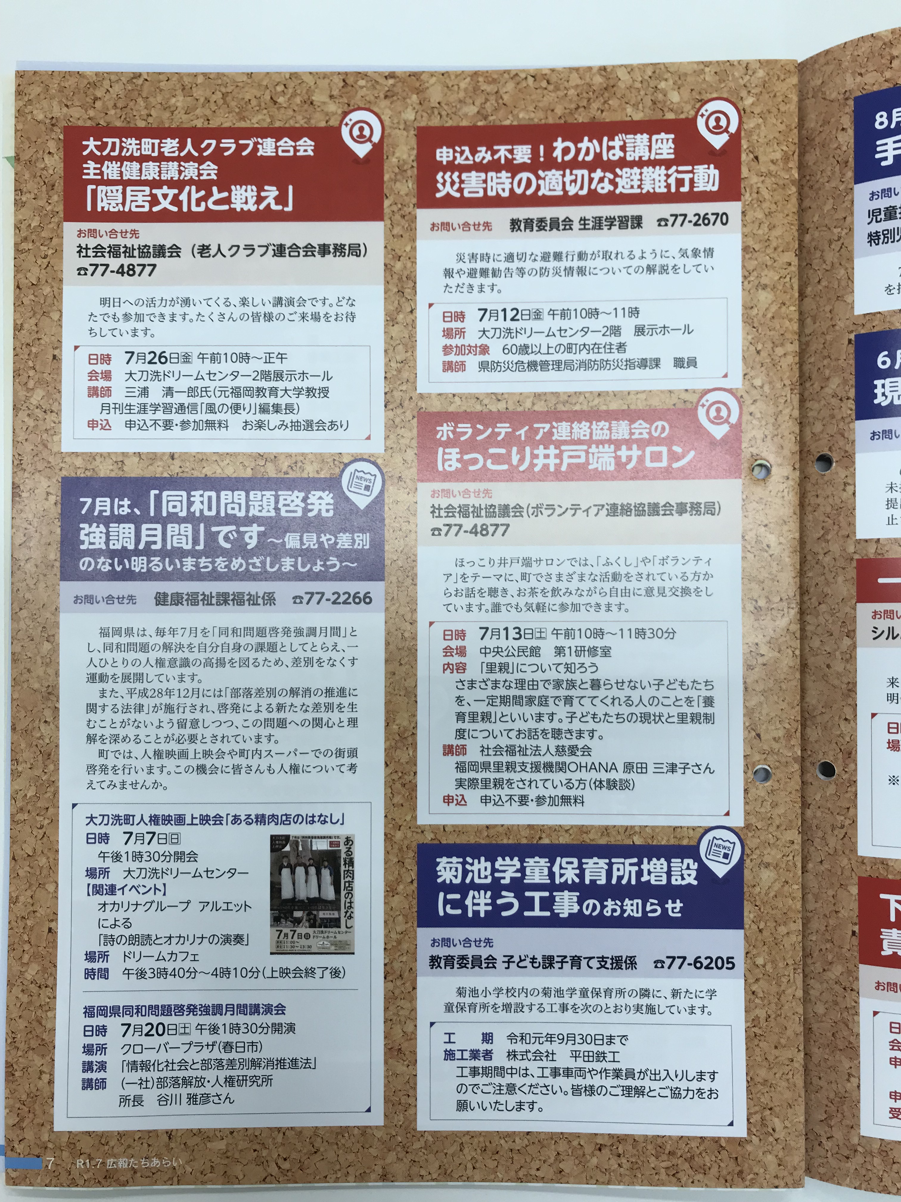 ②大刀洗町広報誌7月号①② 掲載協力:Aコープ三輪店 セブンイレブン大刀洗本郷店 |