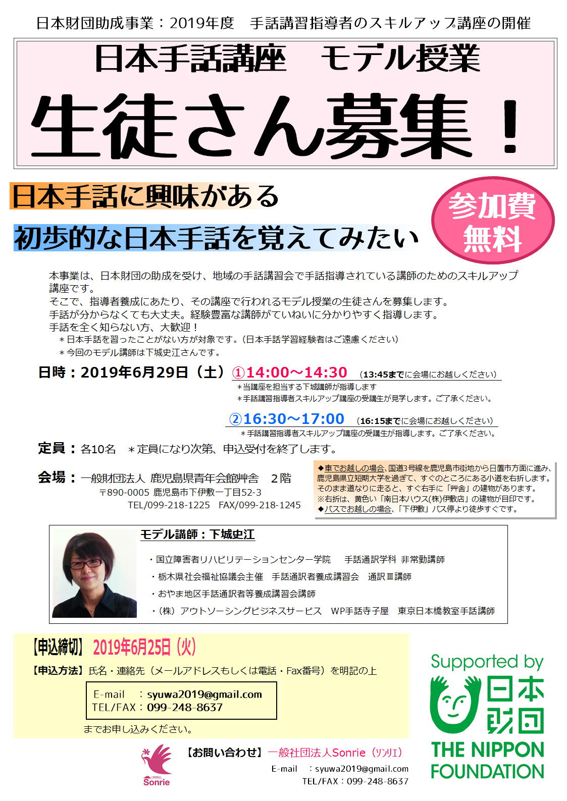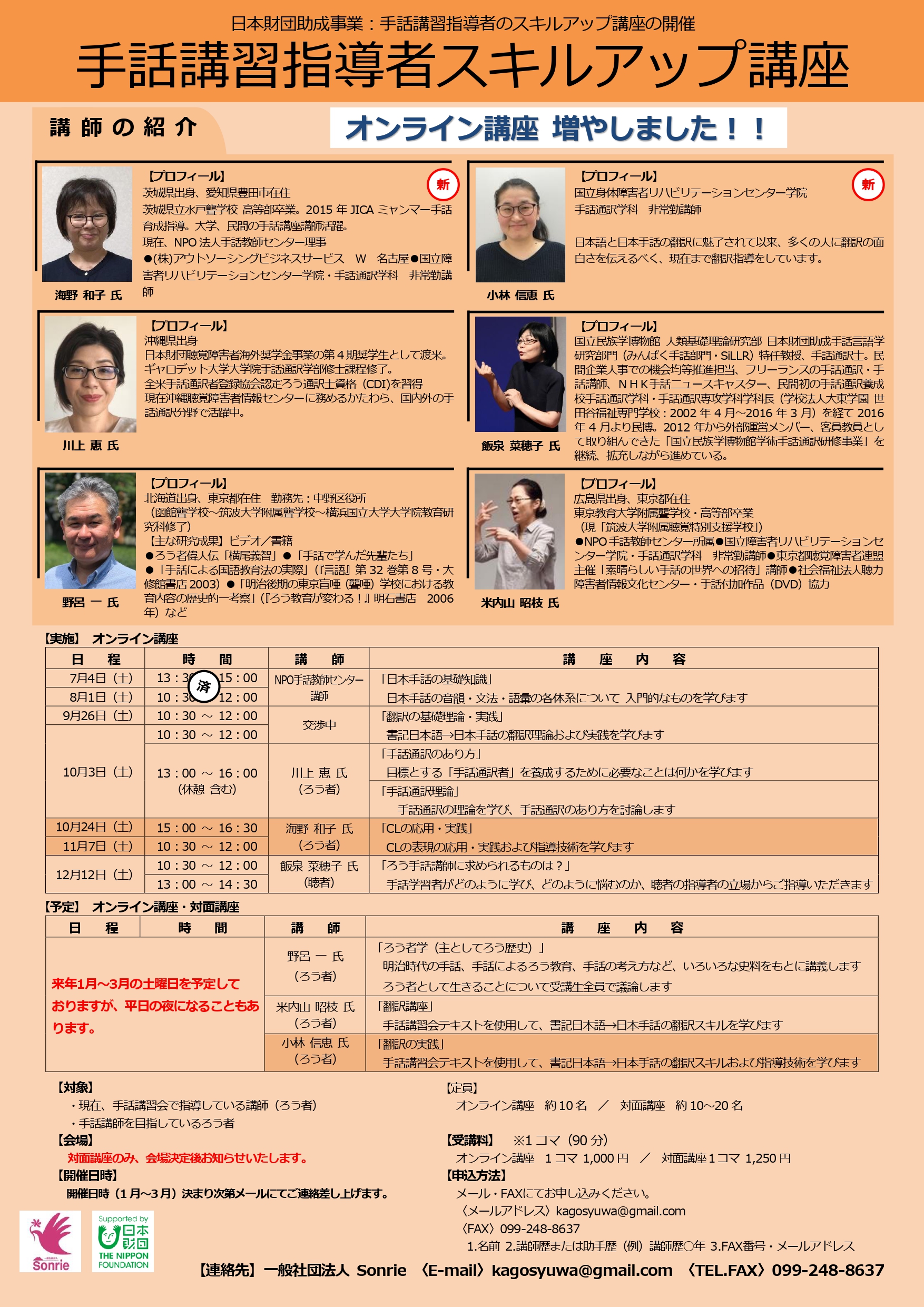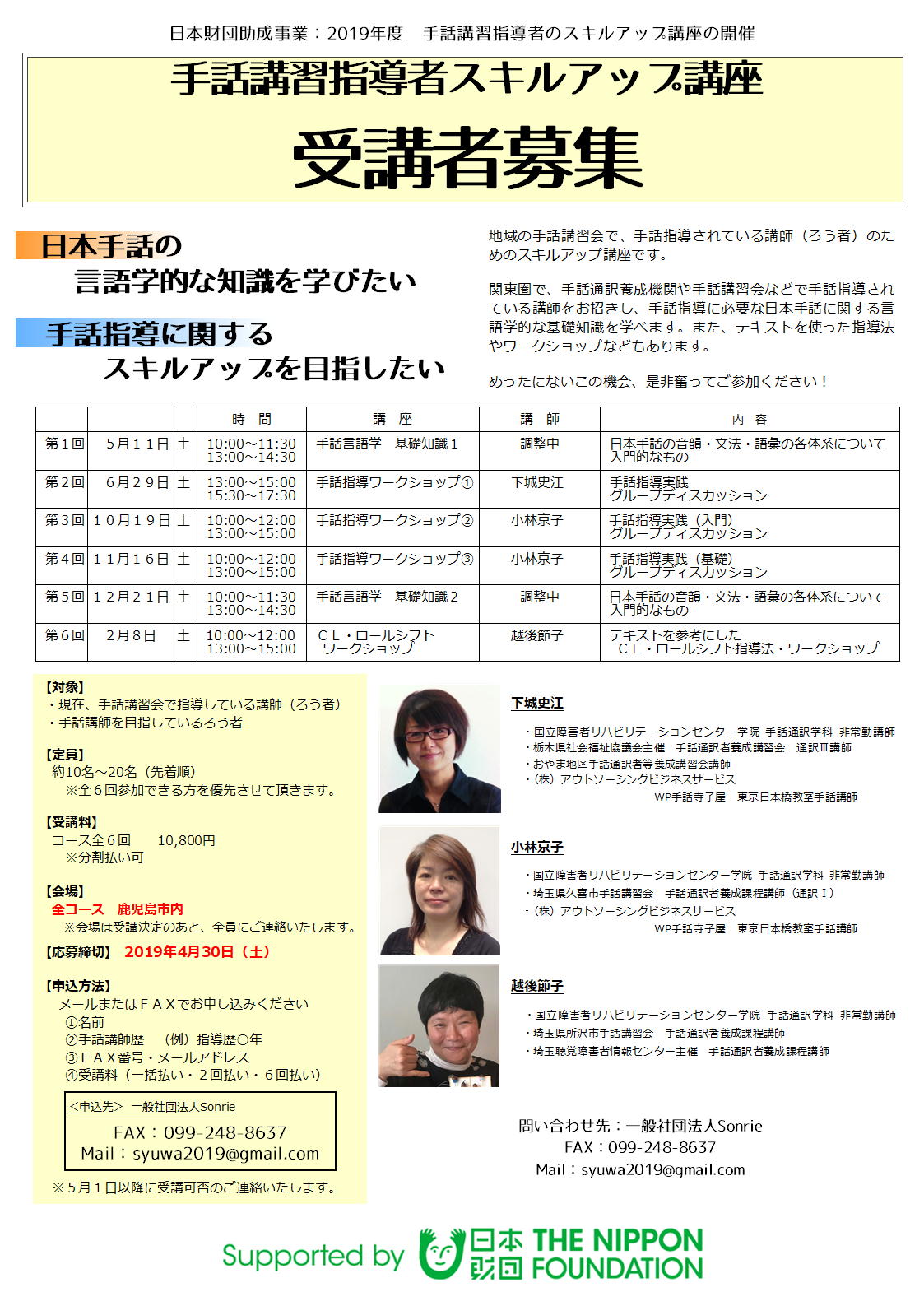 手話講習指導者スキルアップ講座 受講者募集チラシ