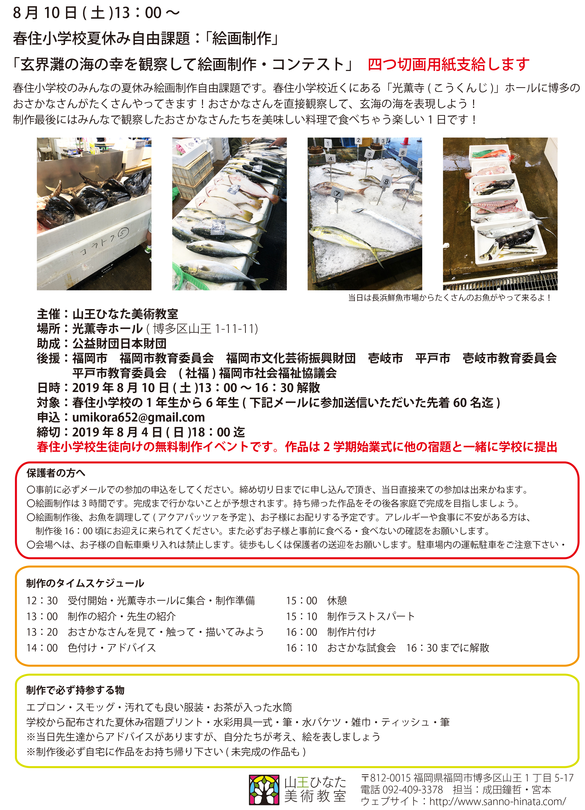 2018年度海から見つめる子どもランドスケープ「ふくおか」光薫寺お魚絵画コンクールリーフレット