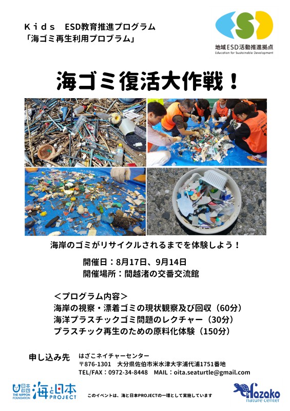 ・ウミガメ保全調査体験プログラム ・海プラクリーン作戦 ・流木アートワークショップ ・海ゴミ復活大作戦! 各500部 |