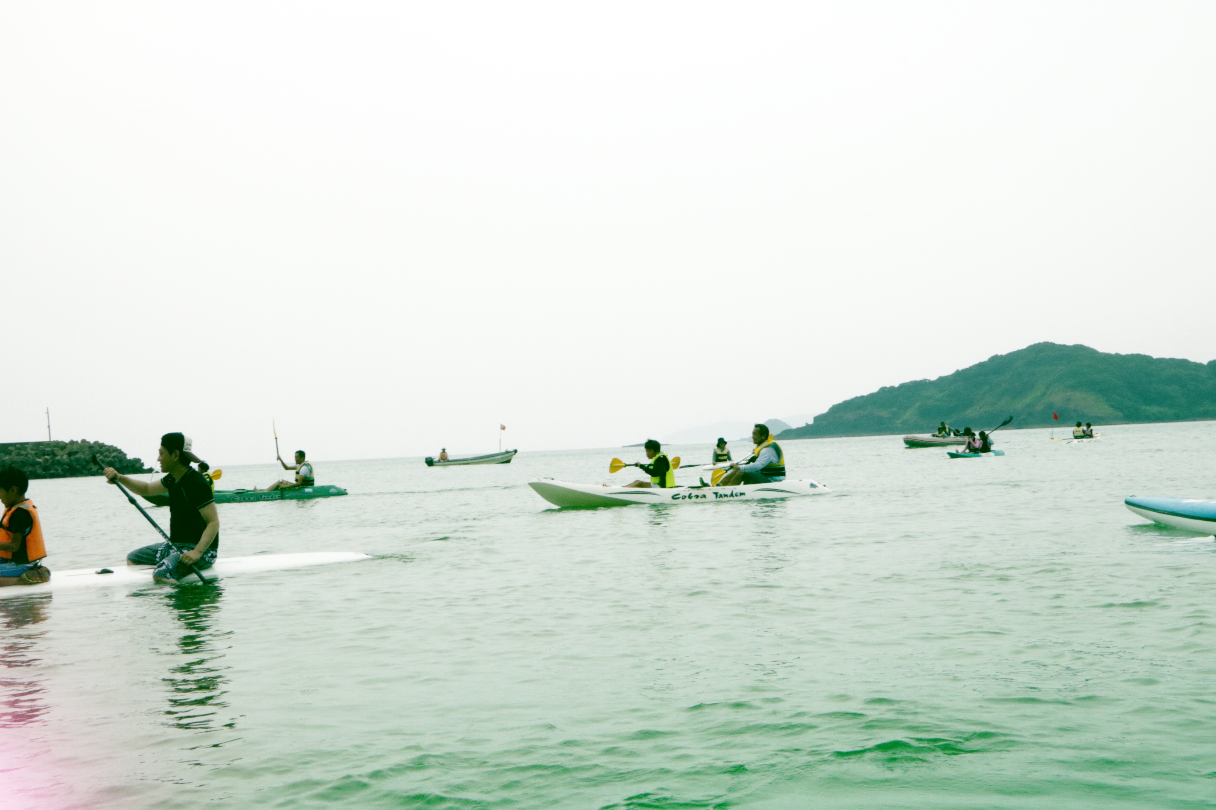 1 日時 8月1日(木)~2日(金) 2 場所 長崎県平戸市根獅子集落 3 内容 a.九州の内陸に住み、日頃は海とあまりかかわることができない子どもたちや親子が長崎県生月島B&Gの協力で、美しい海でカヌー・サップ・ボート・シュノーケリングなどの海洋スポーツを体験(当初福岡市でシュノーケリング体験を予定していたが、実施場所を変更)、海の美しさ・楽しさ・生物の多様性などを体験する b.里山と海を愛して暮らしている地域の方の家に民泊。魚釣り・漁業体験や農業体験。美しい海が豊かな里山とつながっているという大きな自然の循環を学んだ c.現代アーティスト岩田とも子とビーチコーミングののち海の漂着物を使って、各自ストーリーを作成し、各自砂浜に作品を作って飾った。美しい海を保持しているこの地域ならではだが、生きる化石と言われるカブトガニのつがい・産卵に遭遇することができた。 4 参加人数 親子50名 |