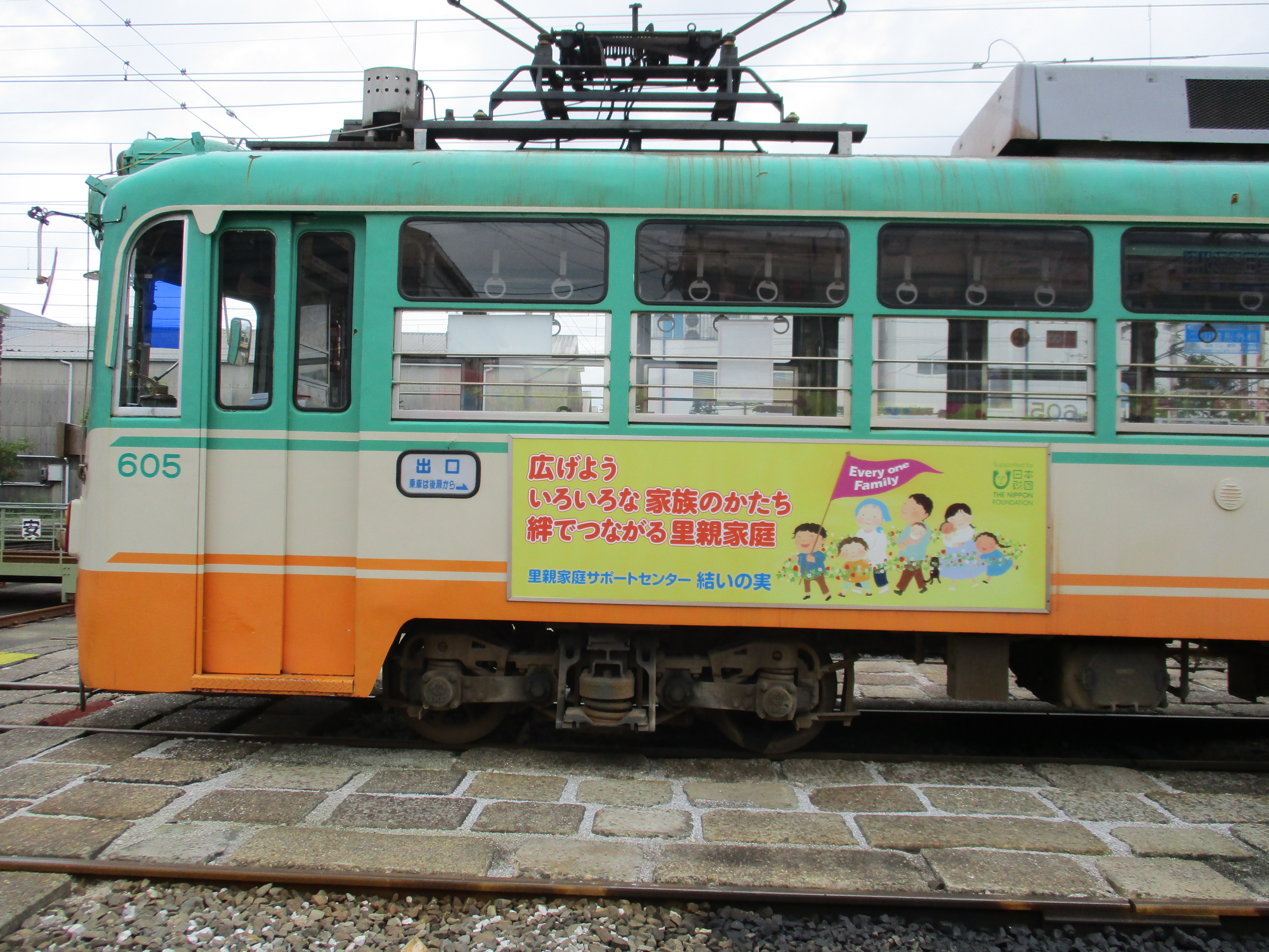 里親制度の広報として、ホスピタルアートを手掛ける小笠原まきさんにイラストを描いてもらい、広告代理店の協力のもと、高知市内を東西南北に走る路面電車の側板にイラストを掲出した。