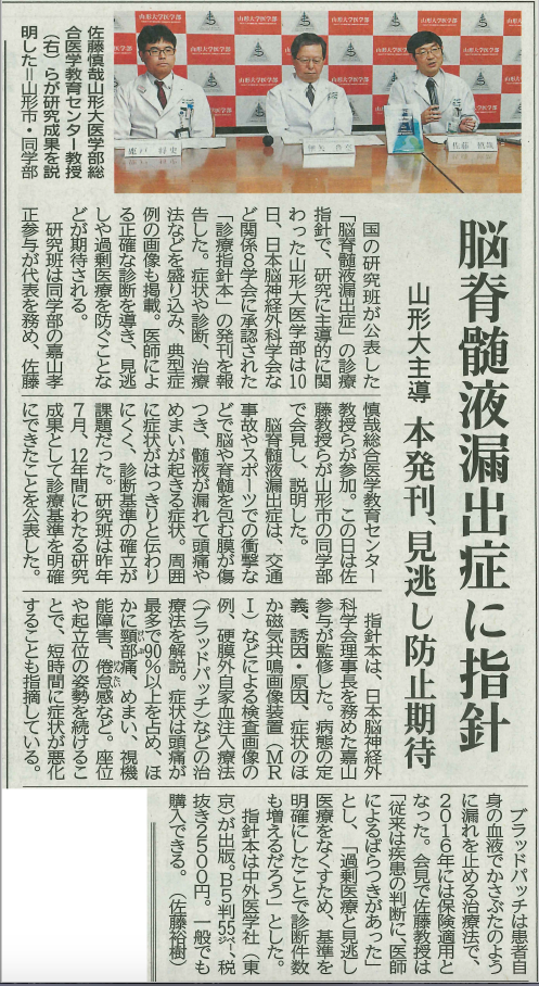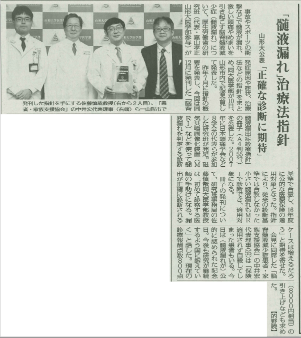 各メディアが参加した新聞記事を添付します。 TV放送は容量が重いためDVDに焼いて発送 会見上 佐藤山形大学医学部副学長 脳神経外科教授 細矢放射線科名誉教授 鹿戸放射線科教授 が重要発言 |