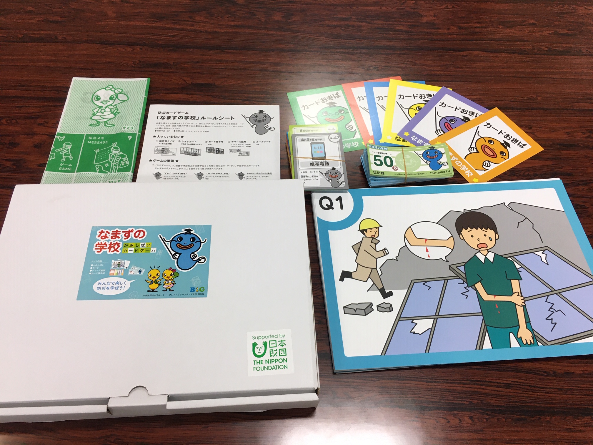 防災教室実施報告書 防災教室防災カードゲームなまずの学校・教材用バンダナ |