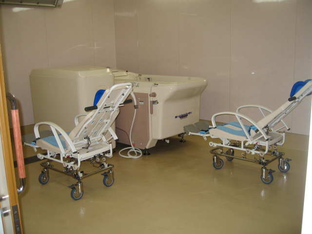 工事内容 :重度高齢者や身体障害者用の特殊浴槽の整備 機器整備 :特殊浴槽(チェアインバス)1台、搬送車2台 施設名称 :デイサービスセンター越前たけふサンホーム 整備場所 :福井県越前市御幸町17-16 面積:構造 :約1,300㎡、鉄骨造 施設概要 :機能訓練室、食堂、レクレーションルーム、浴室、厨房、事務室、静養室 定員 :デイサービスセンター30名、高齢者専用賃貸住宅10室 事業実施場所は小学校に隣接、住宅地の中ということや以前、スーパーであったことな ど、地域の皆様の拠点の一つとなっています。 今回特殊浴槽を整備できたことにより、重度高齢者だけでなく当方人の母体である身体 障害者療護施設でのノウハウも生かし、地域の高齢者や障害者の受け入れが可能とな り、地域支援、地域福祉の貢献が多大に図れるようになりました。 |