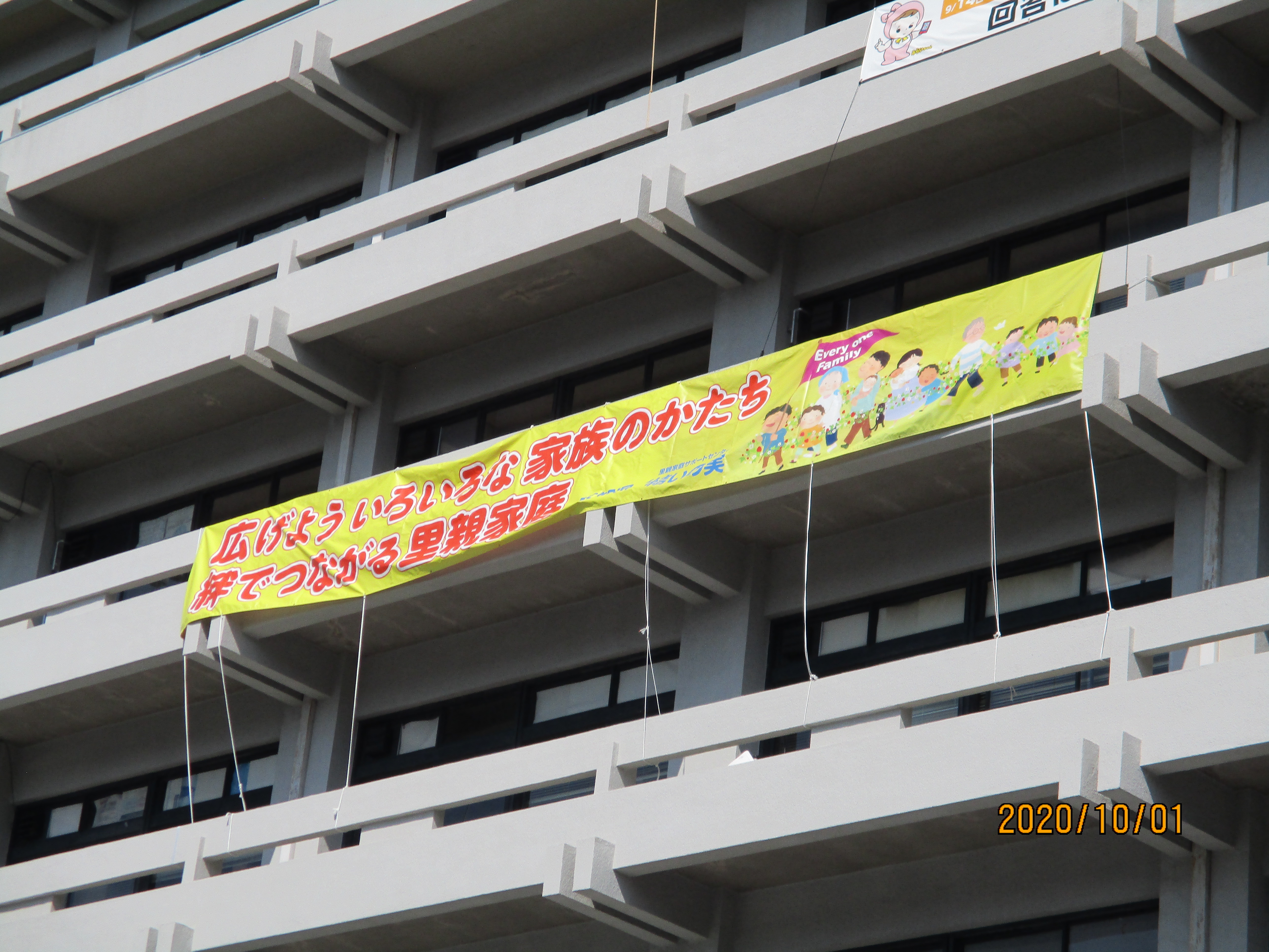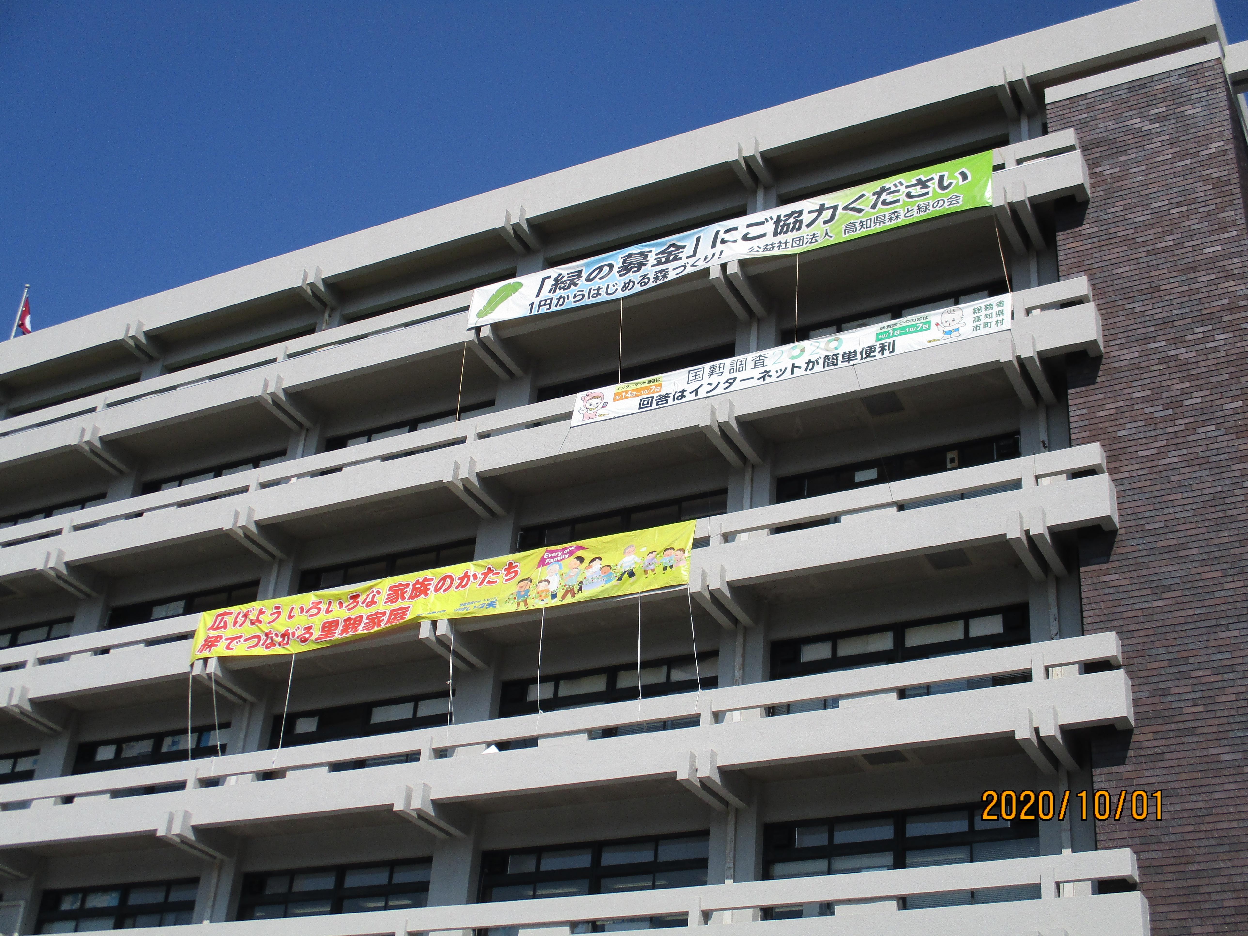 去年と同様に、10月の里親月間に合わせて、里親制度広報のためのイラストを用いた横断幕を、高知県庁に1か月間掲出した。