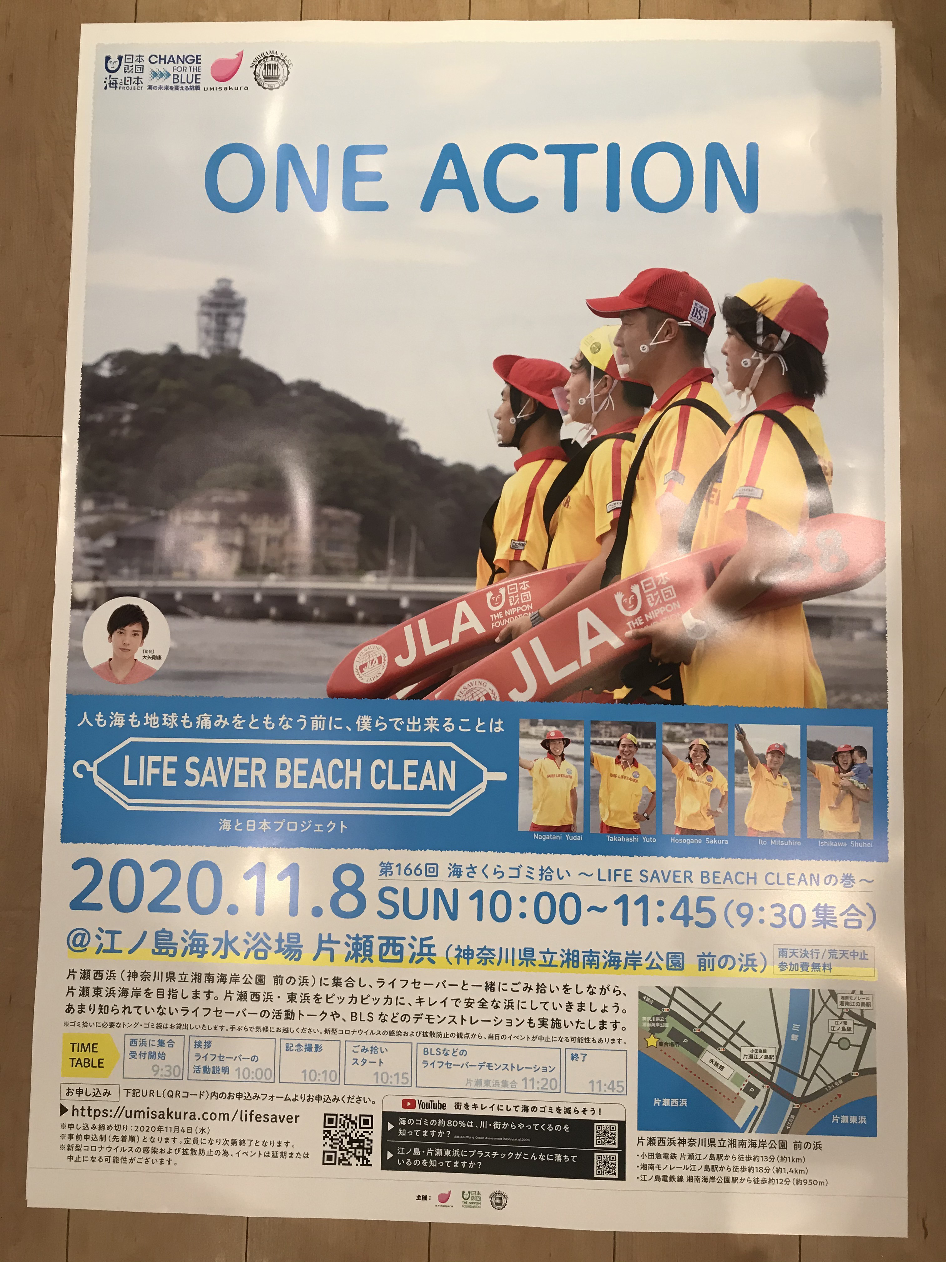 2019年度 海のごみ拾いの全国展開の基盤推進(海と日本2020・CFB)釘のない海の家 ライフセーバーごみ拾い ポスター小田急電鉄掲載用