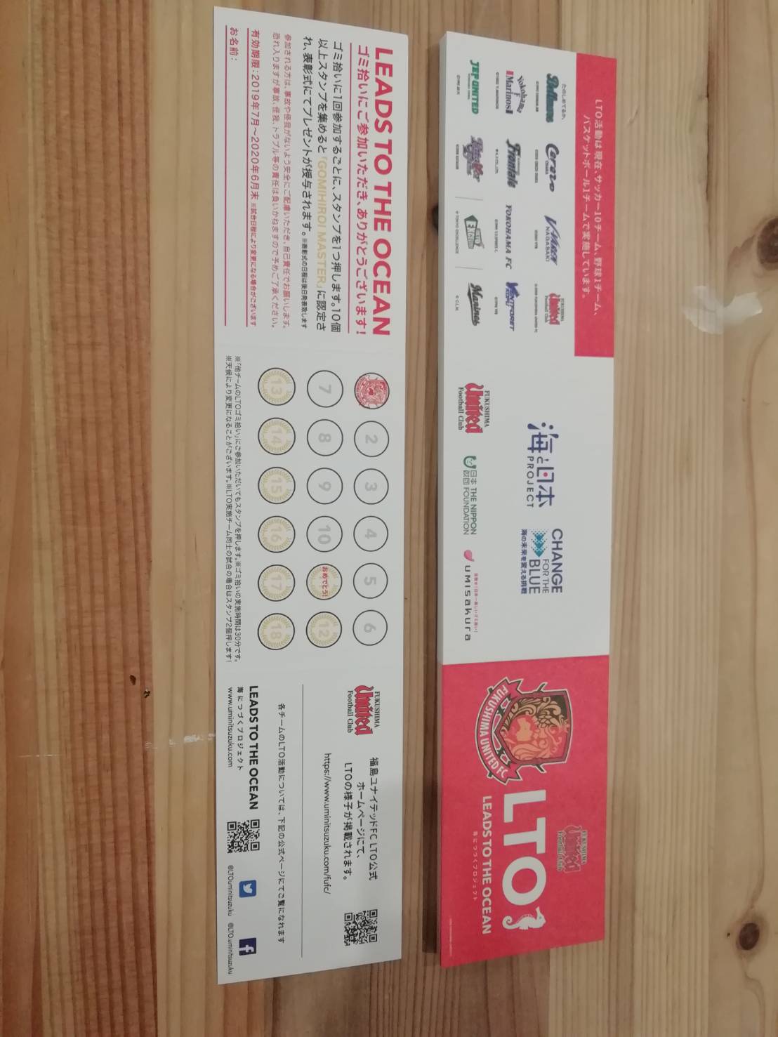 2018年度 LEADS TO THE OCEAN~海につづくプロジェクト~(海と日本2019) 福島ユナイテッドFCスタンプカード