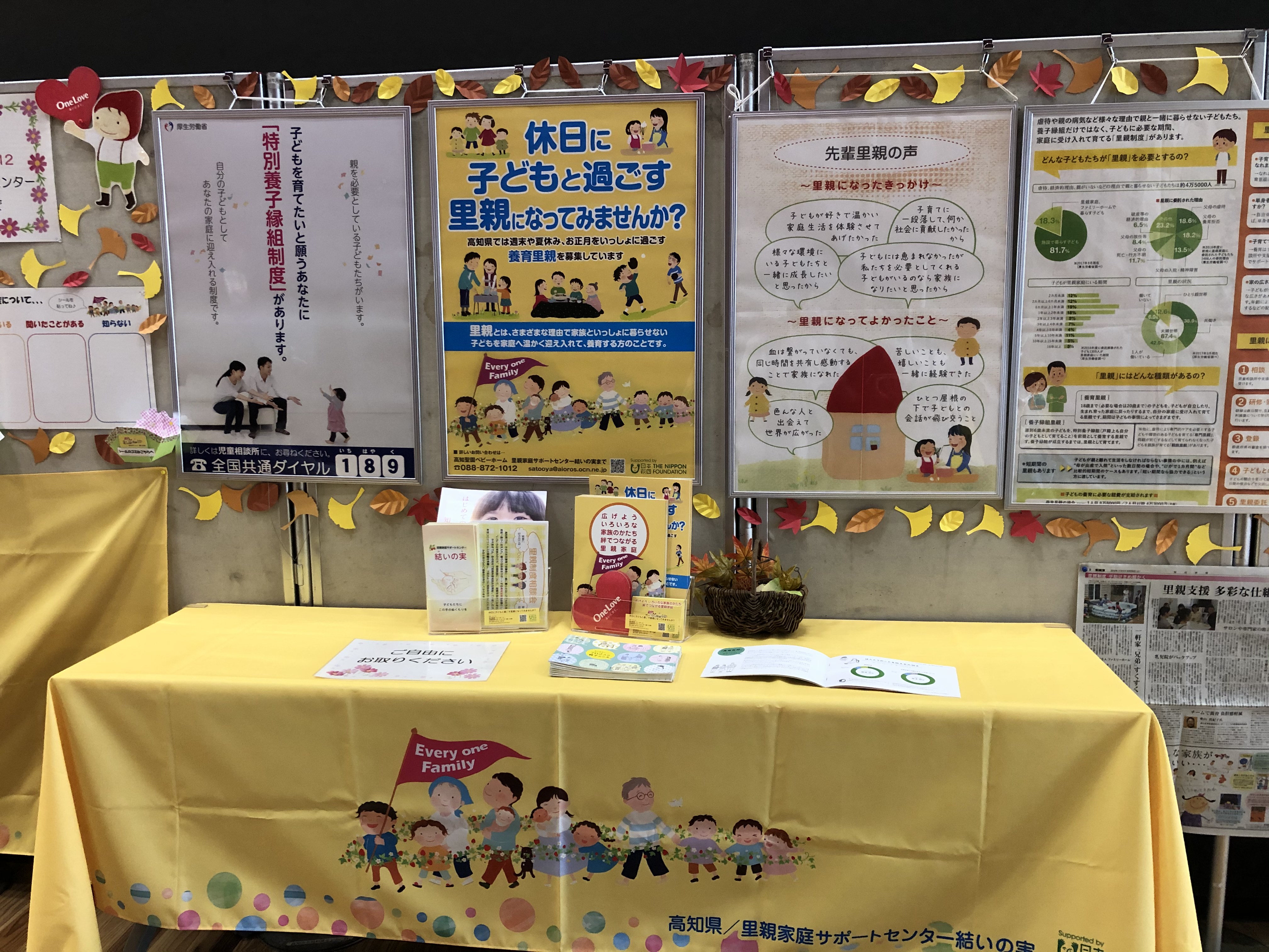 里親制度の広報活動として、高知市の中心にある高知市役所で11/16~11/27の2週間里親制度のパネル展を開催した。