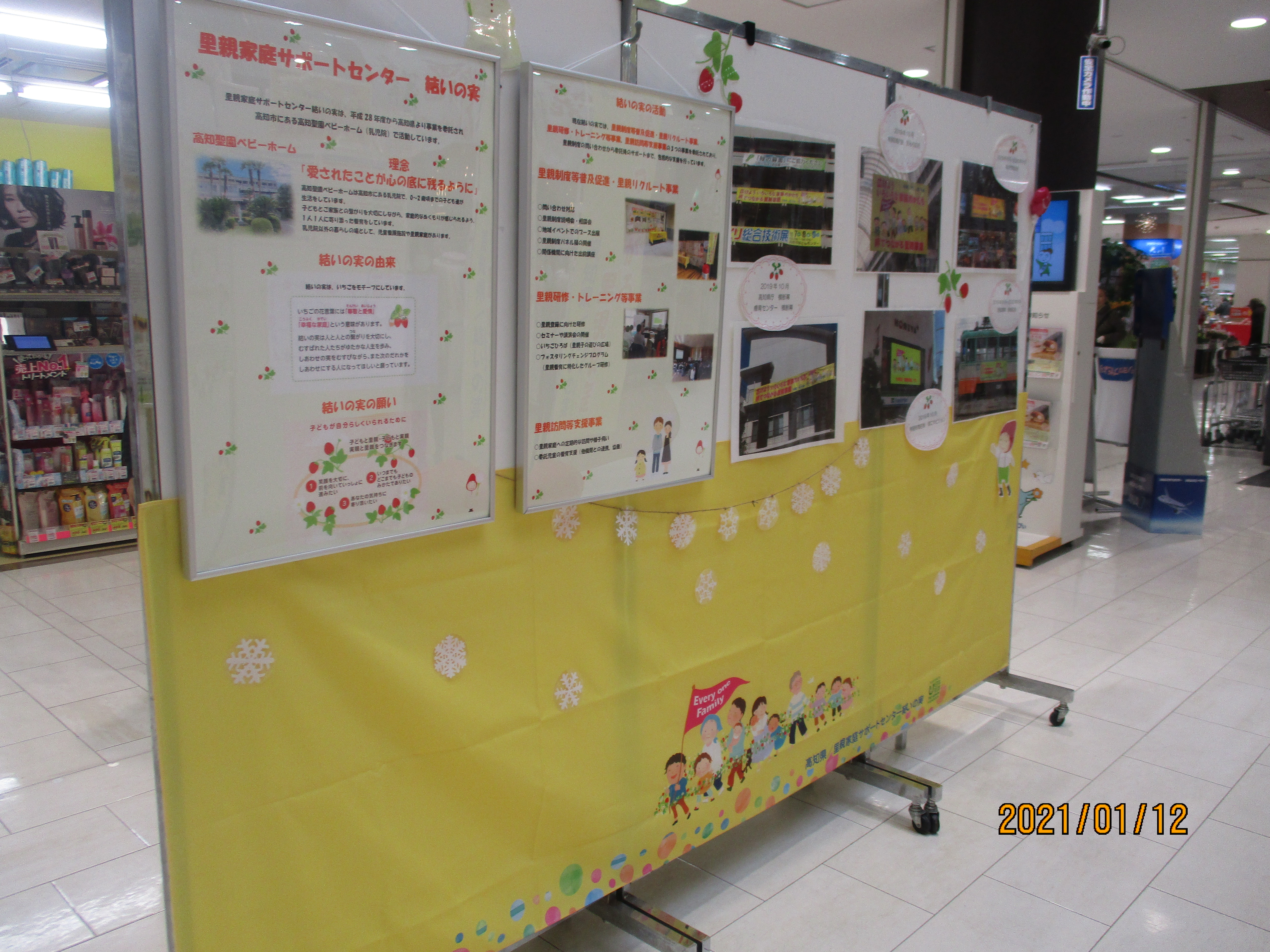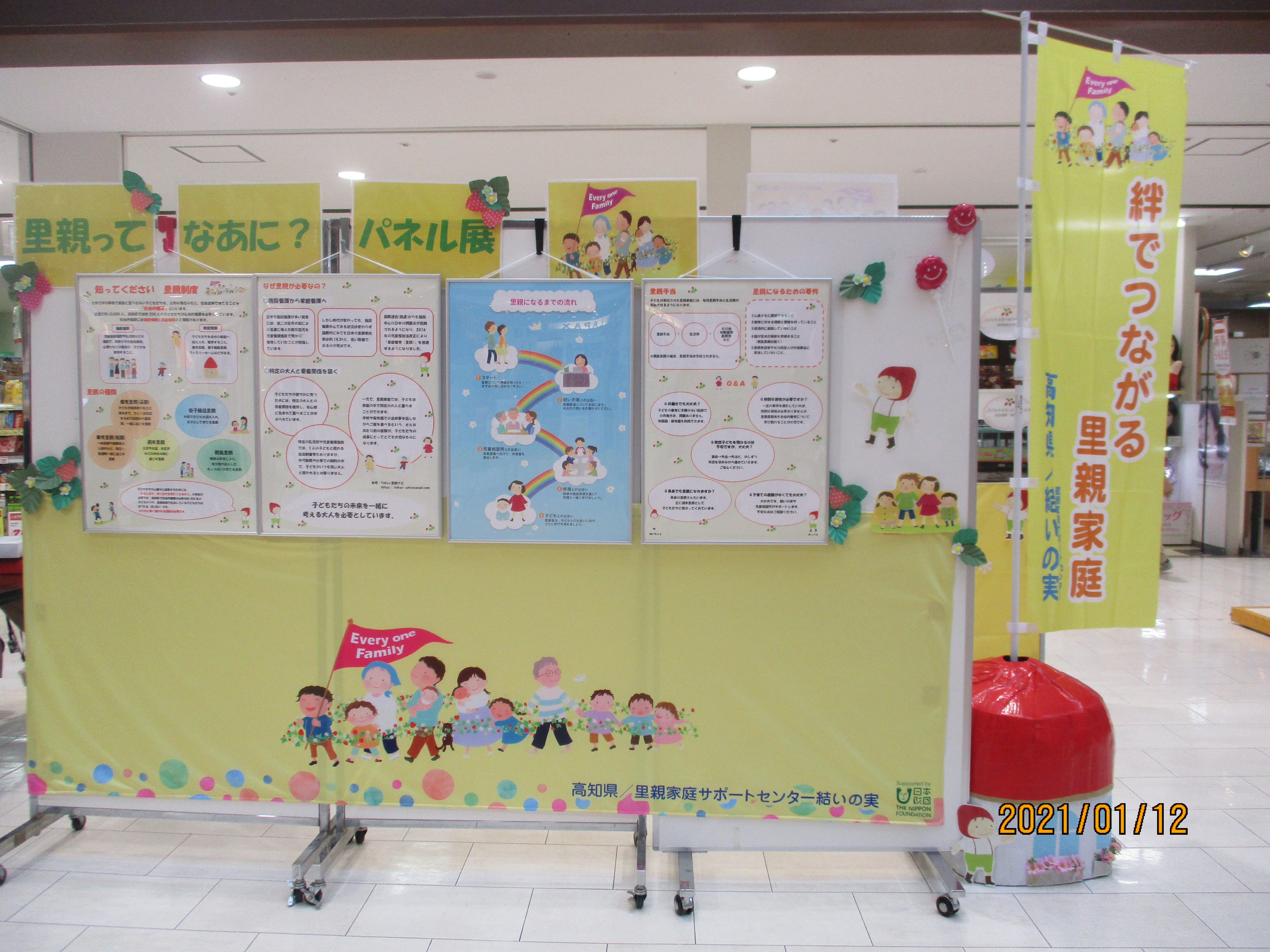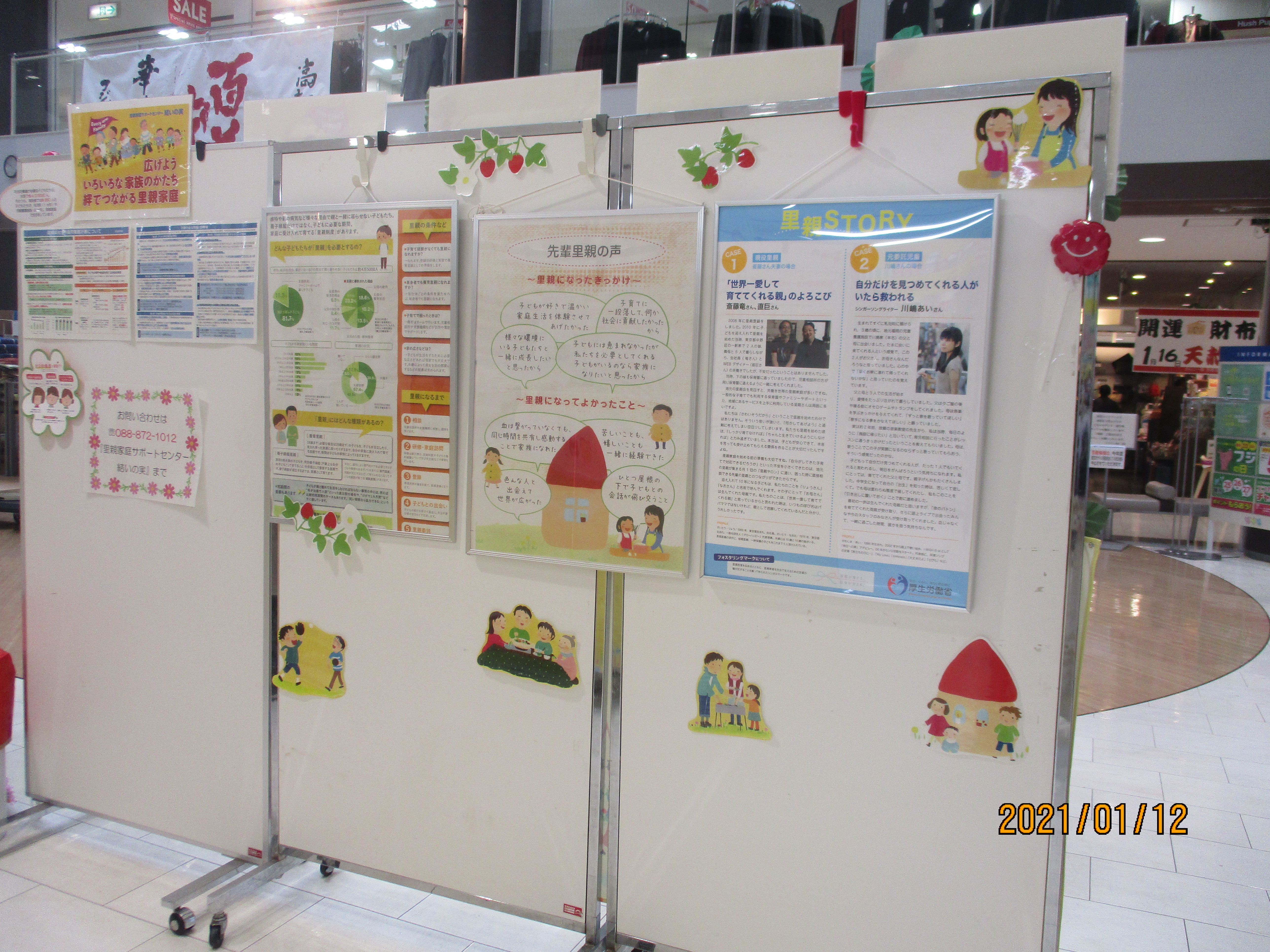 里親制度の広報活動として、高知市の西にあるフジグラン高知(量販店)で1/12~1/21の10日間里親制度のパネル展を開催した。