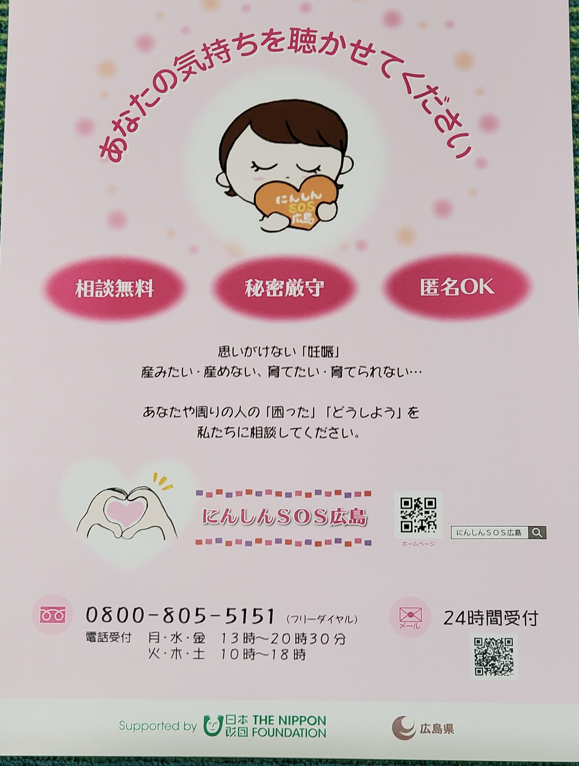 妊娠葛藤相談の窓口として「にんしんSOS広島」を周知するための広報資料(ポスター・ステッカー)