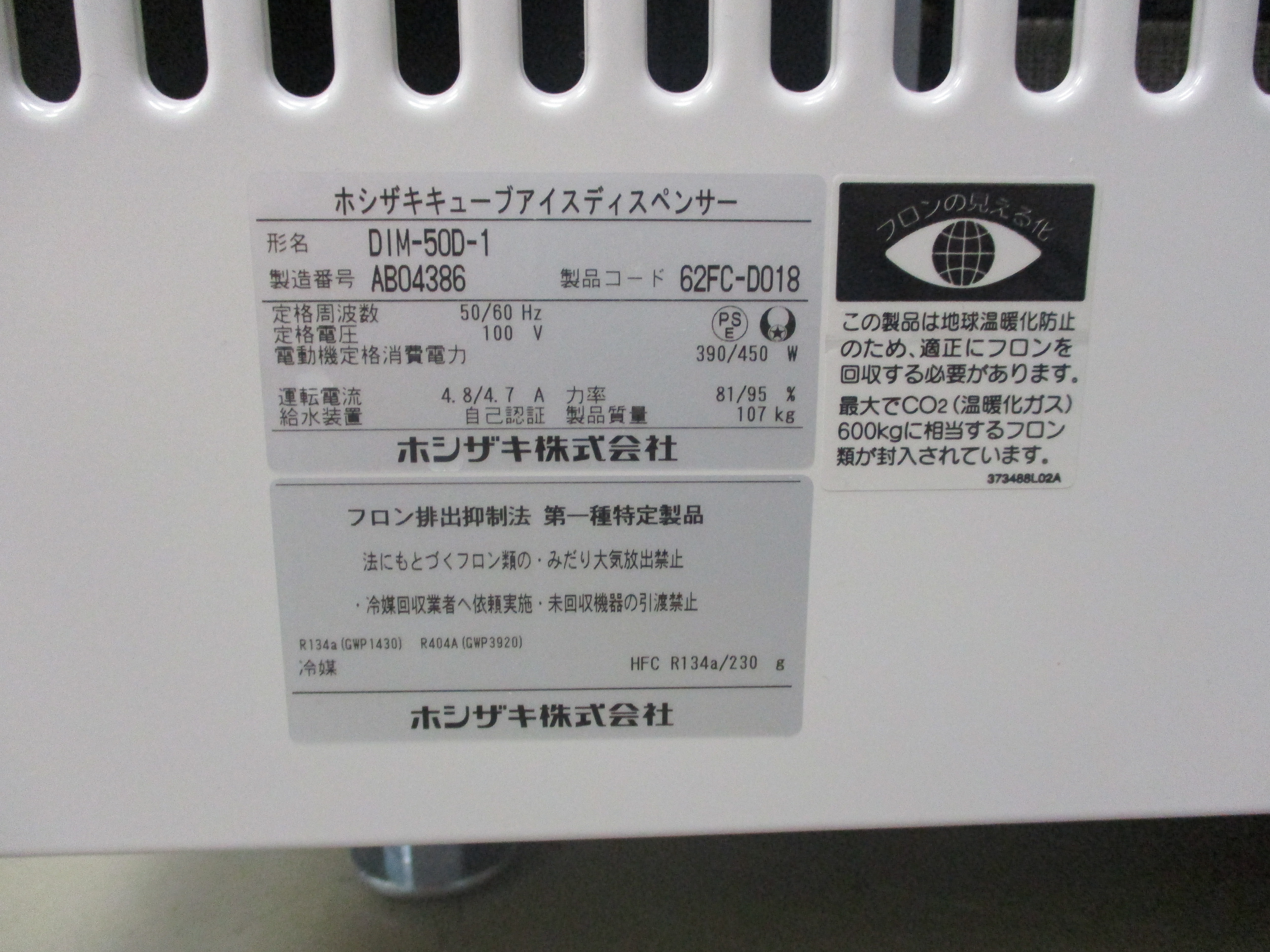 全自動製氷機「キューブアイスディスペンサー」、数量1台