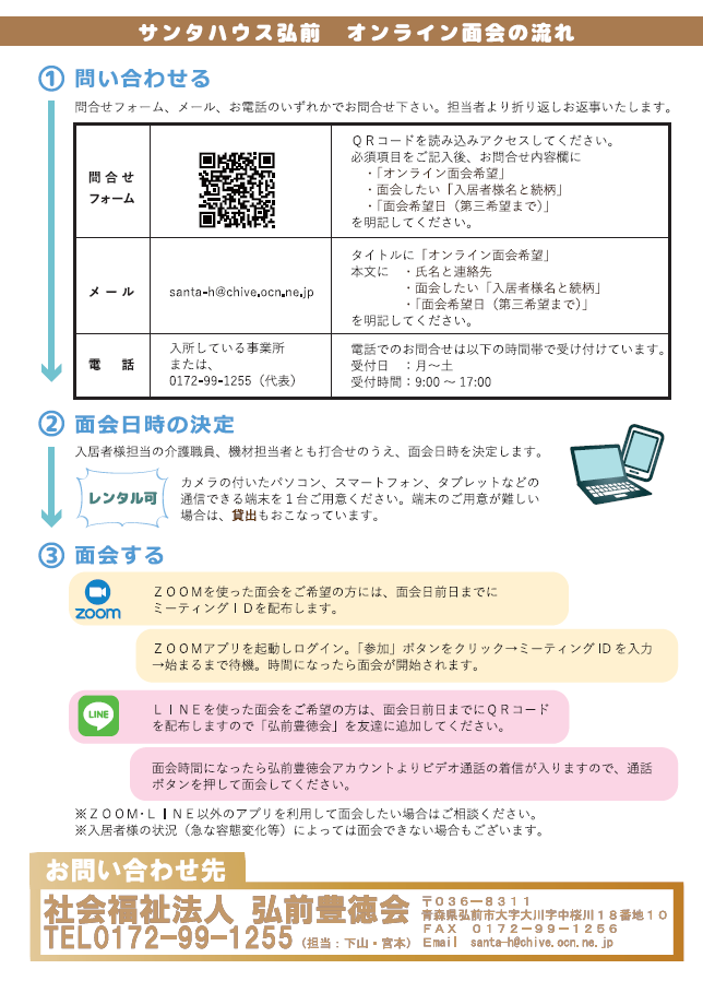 表紙(事業名) 中面 ・事業の背景 ・事業の柱 Ⅰ帰郷準備活動の実施 Ⅱ帰郷支援活動の実施 Ⅲ地域交流イベントの実施 裏表紙 オンライン面会の流れ |
