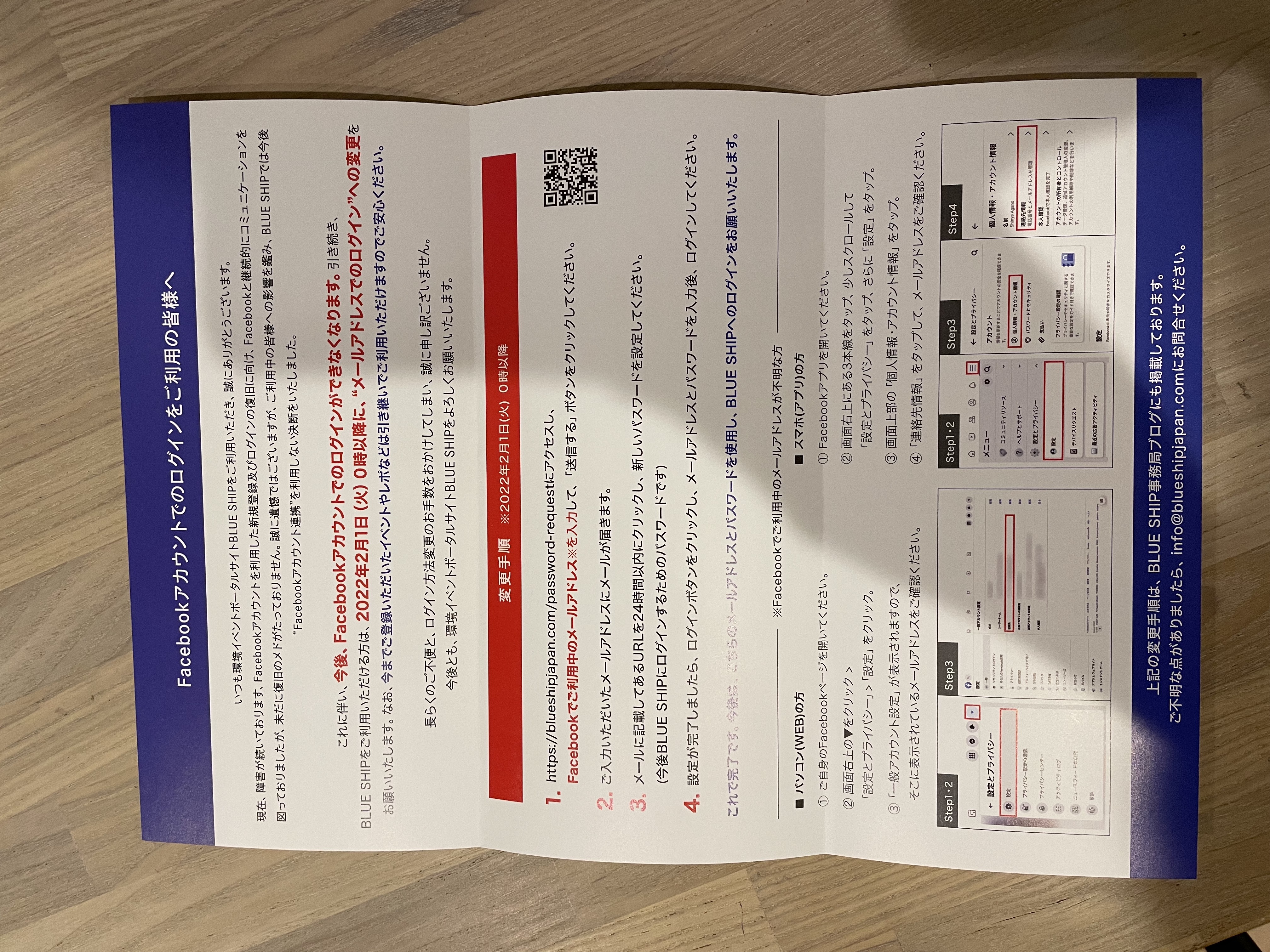 2021年度BLUESHIP チラシ Facebookアカウント移行手続のご案内