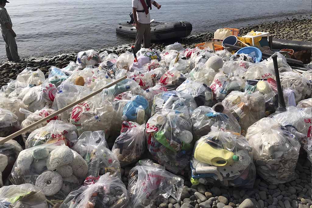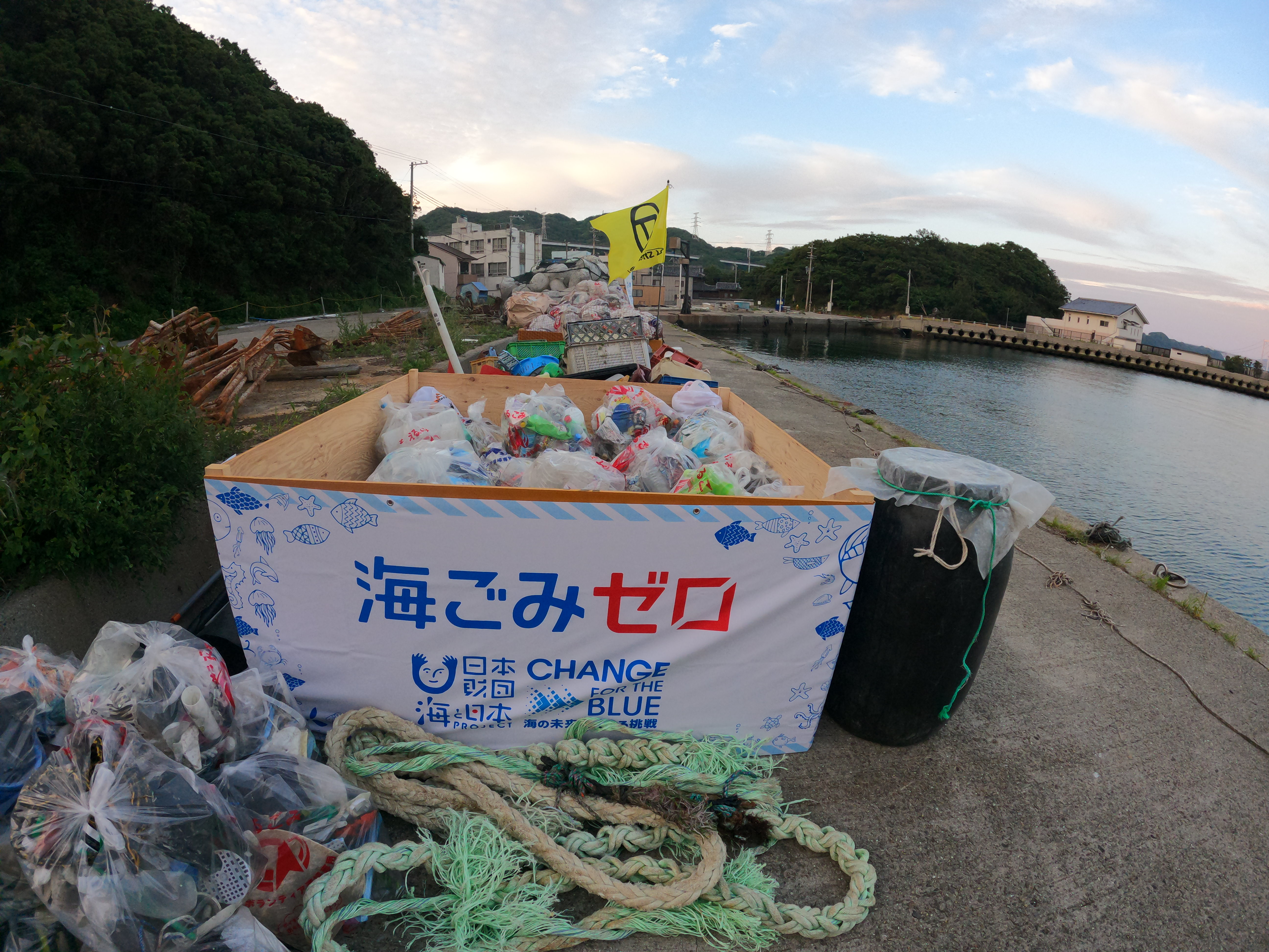 2022年度 海と日本プロジェクト 日本財団助成金 回収困難場所の大量漂着ゴミを船を使い拾う。1