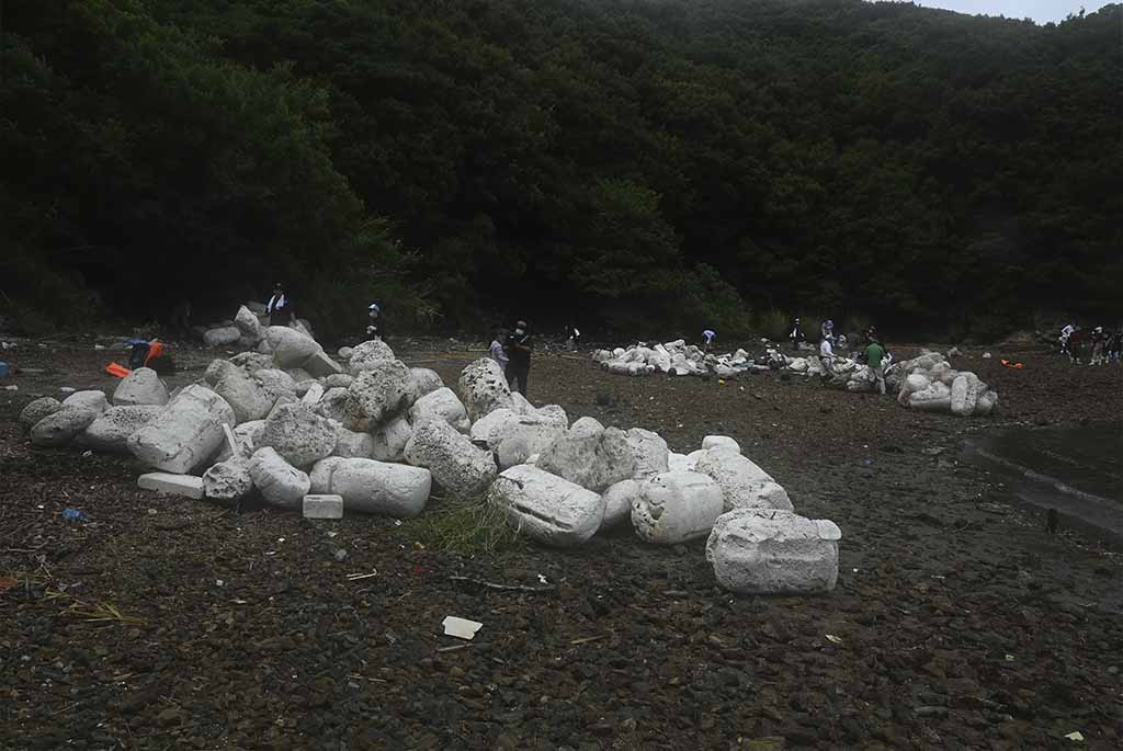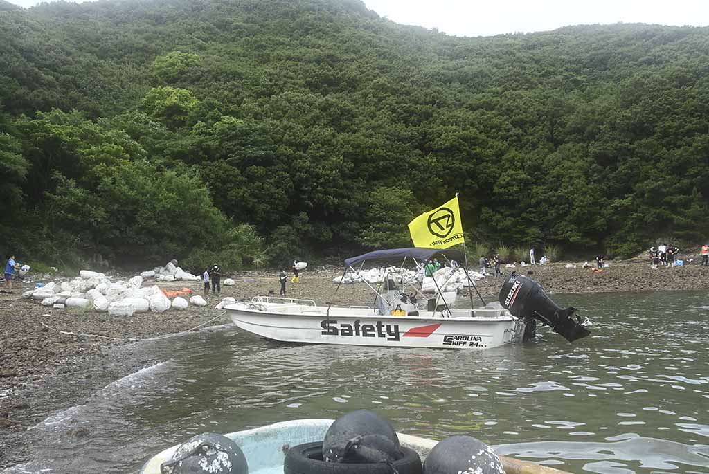 2022年度 海と日本プロジェクト 日本財団助成金 回収困難場所の大量漂着ゴミを船を使い拾う。2