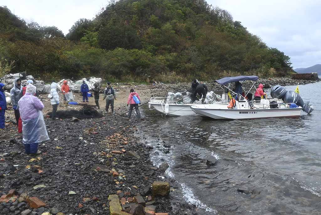 2022年度 海と日本プロジェクト 日本財団助成金 回収困難場所の大量漂着ゴミを船を使い拾う。3