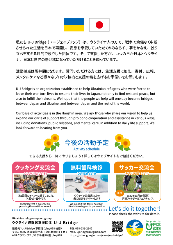 当団体の概要、支援・及びイベント内容告知、協力者募集のための広報チラシ