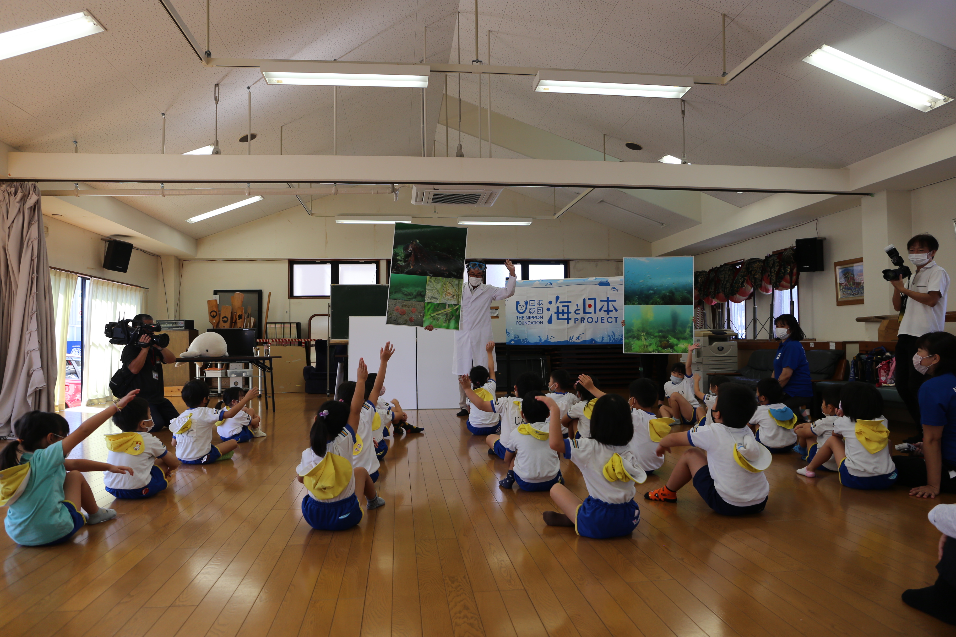 2022年度 大村湾フェスタ 漁師のお仕事体験写真 大村湾に生息する生物の学習会写真 ナマコの稚魚放流体験写真